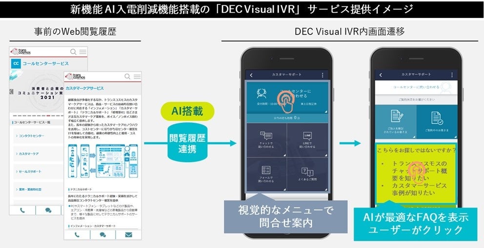 トランスコスモス、AIリコメンドFAQ機能を標準搭載した「DEC Visual IVR」を開発、提供を開始