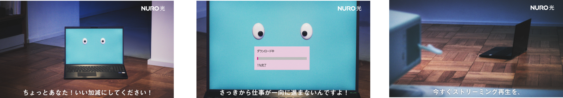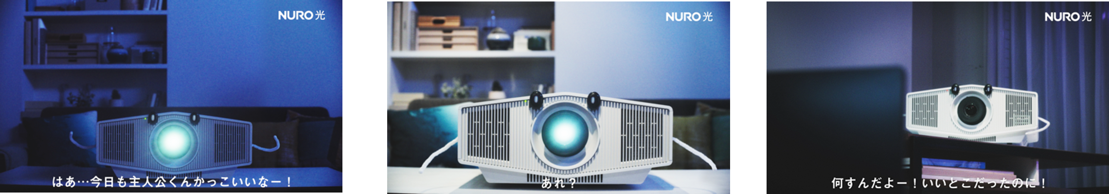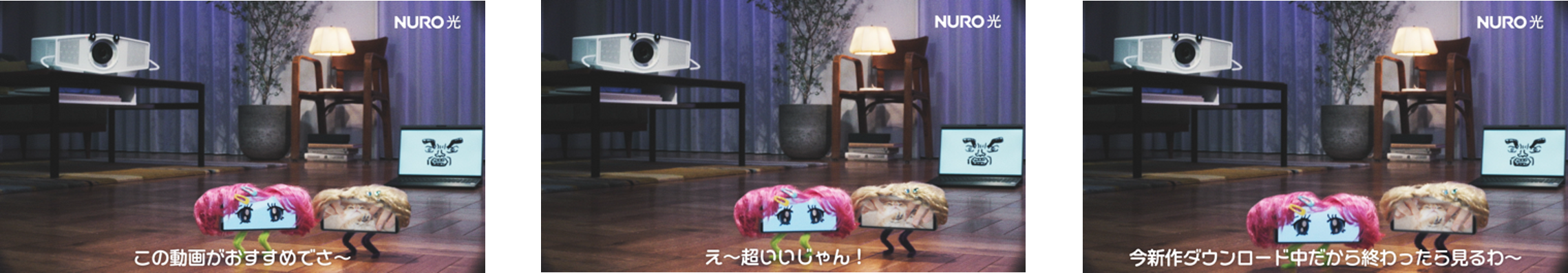 これに合わせ、人気声優の小野大輔さんと梶裕貴さんを起用し、パソコンやプロジェクター、スマホを擬人化したキャラクターたちが巻き起こすシュールでコミカルなWEB-CMを、本日公開します。さらに特設サイトでは、インターネットの通信速度にあわせてキャラクターたちとの親密度が変わる「キュンが加速する!NURO 光 スピードテスト」のほか特別コンテンツも公開しています。