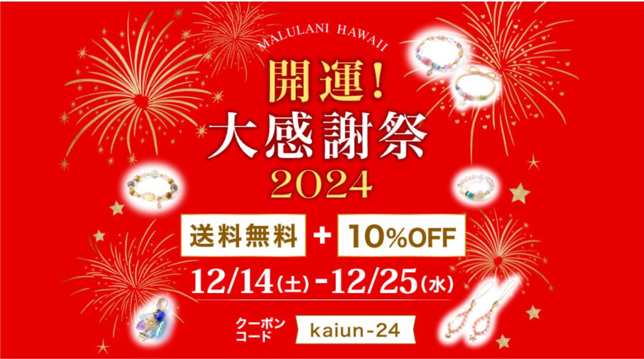 2024 開運大感謝祭【送料無料+10%OFF】12/14-25 "ハワイ発パワーストーンブランド"マルラニハワイ 表参道店&ルクア店&ネットショップ 同時開催スタート