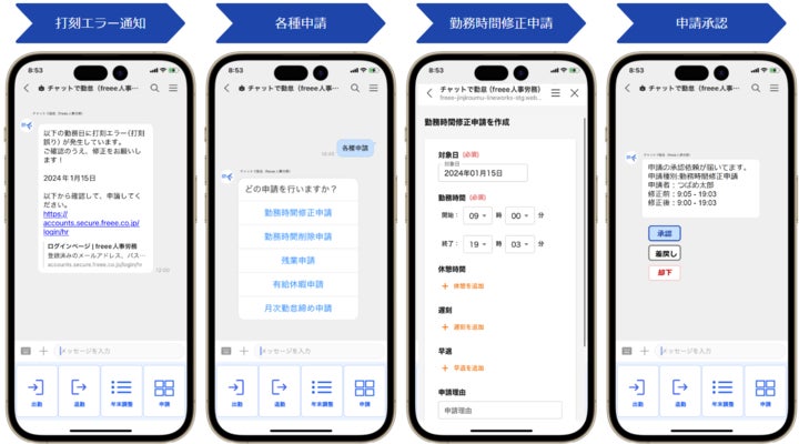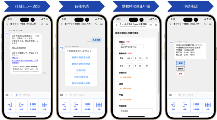 freee人事労務とLINE WORKSを連携する「チャットで勤怠(freee人事労務)」、申請承認機能の提供を開始