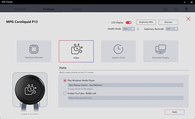 MSI CenterのEZ Displayアプリでループ再生したい動画のリンクを入力するだけで、LCD上でその映像が流れ始めます!