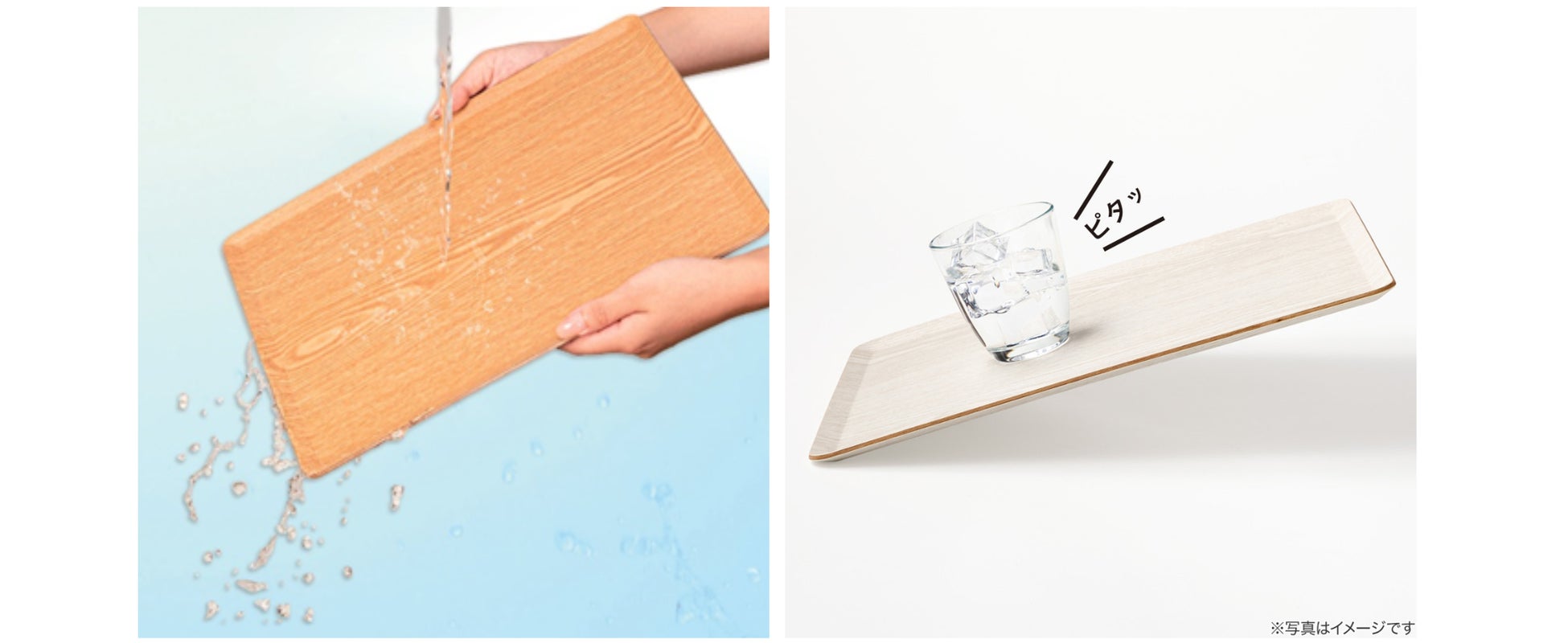 昨年の販売以来、シリーズ累計販売数30万枚超の大人気商品「丸洗いできるすべりにくい木製トレー」は、表面に特殊なコーティングを施し、丸洗い・食洗機での洗浄が可能な商品です。