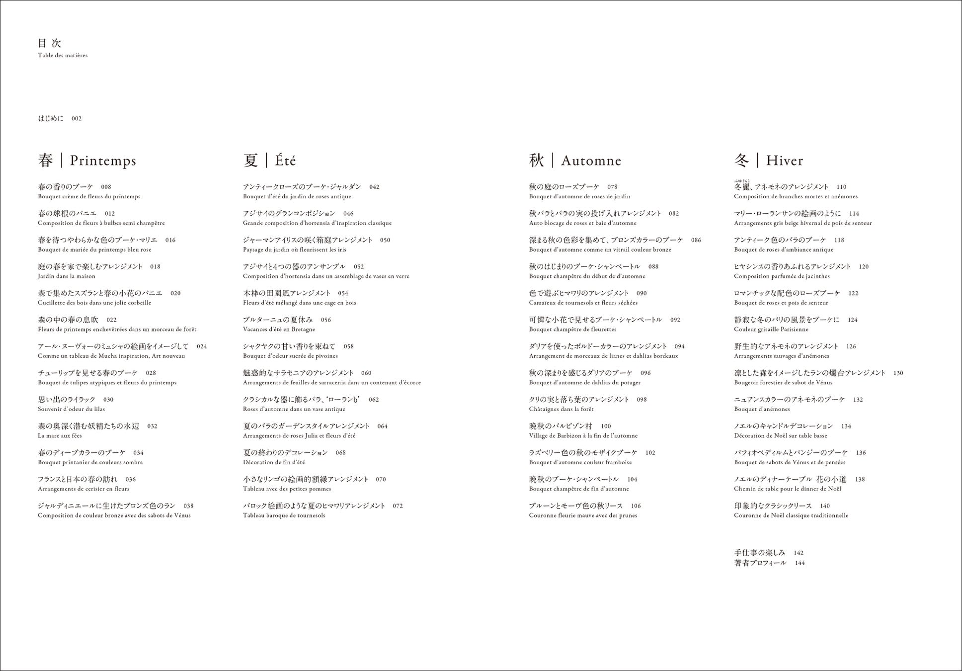 人気フラワーデザイナーによる、"季節ごと"の作品と花合わせのポイントが満載の一冊!