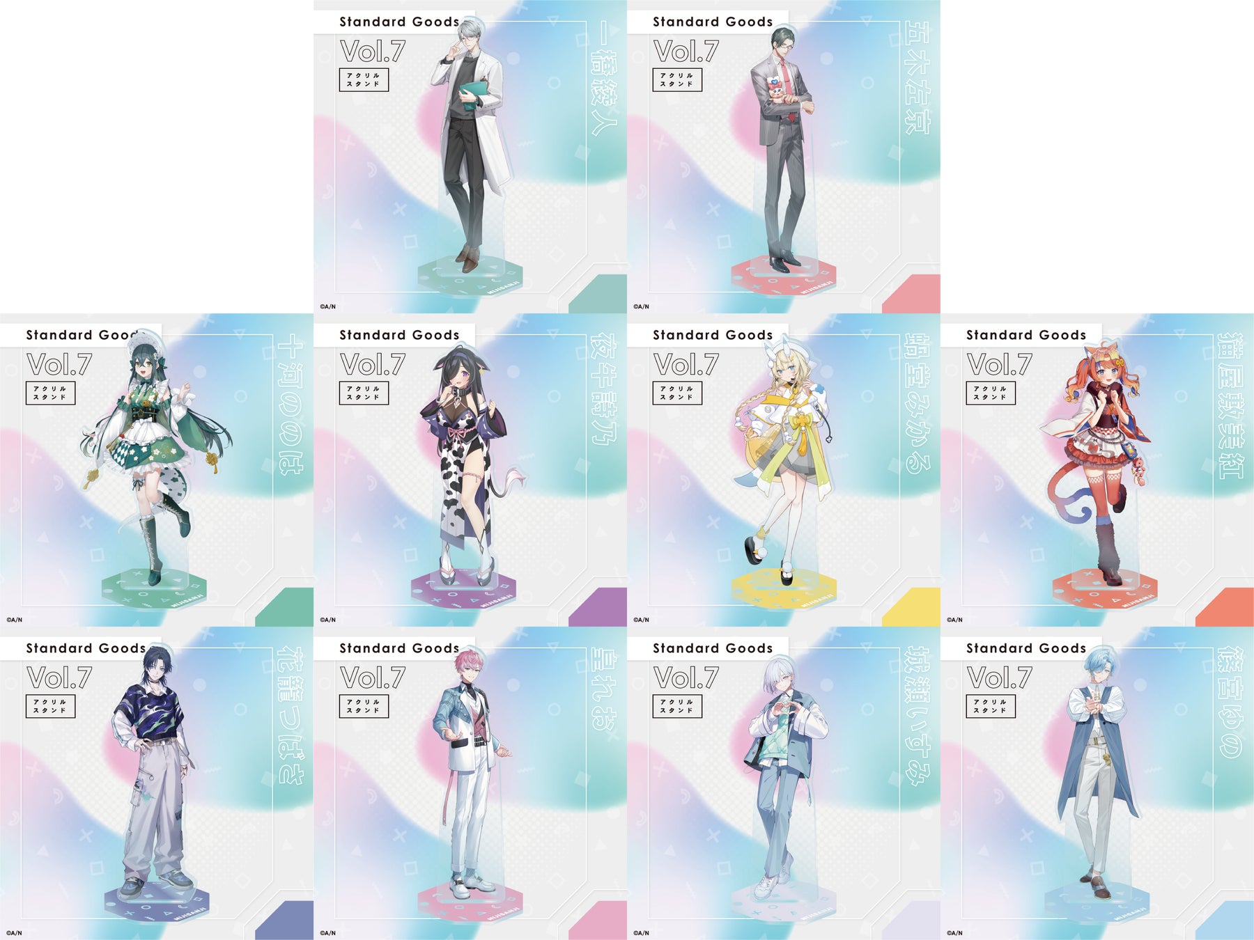 新ビジュアルを使用したグッズシリーズ「Standard Goods」より、Vol.7にはにじさんじライバーの一橋綾人、五木左京、十河ののは、夜牛詩乃、蝸堂みかる、猫屋敷美紅、皇れお、篠宮ゆの、城瀬いすみ、花籠つばさ の10名が登場!