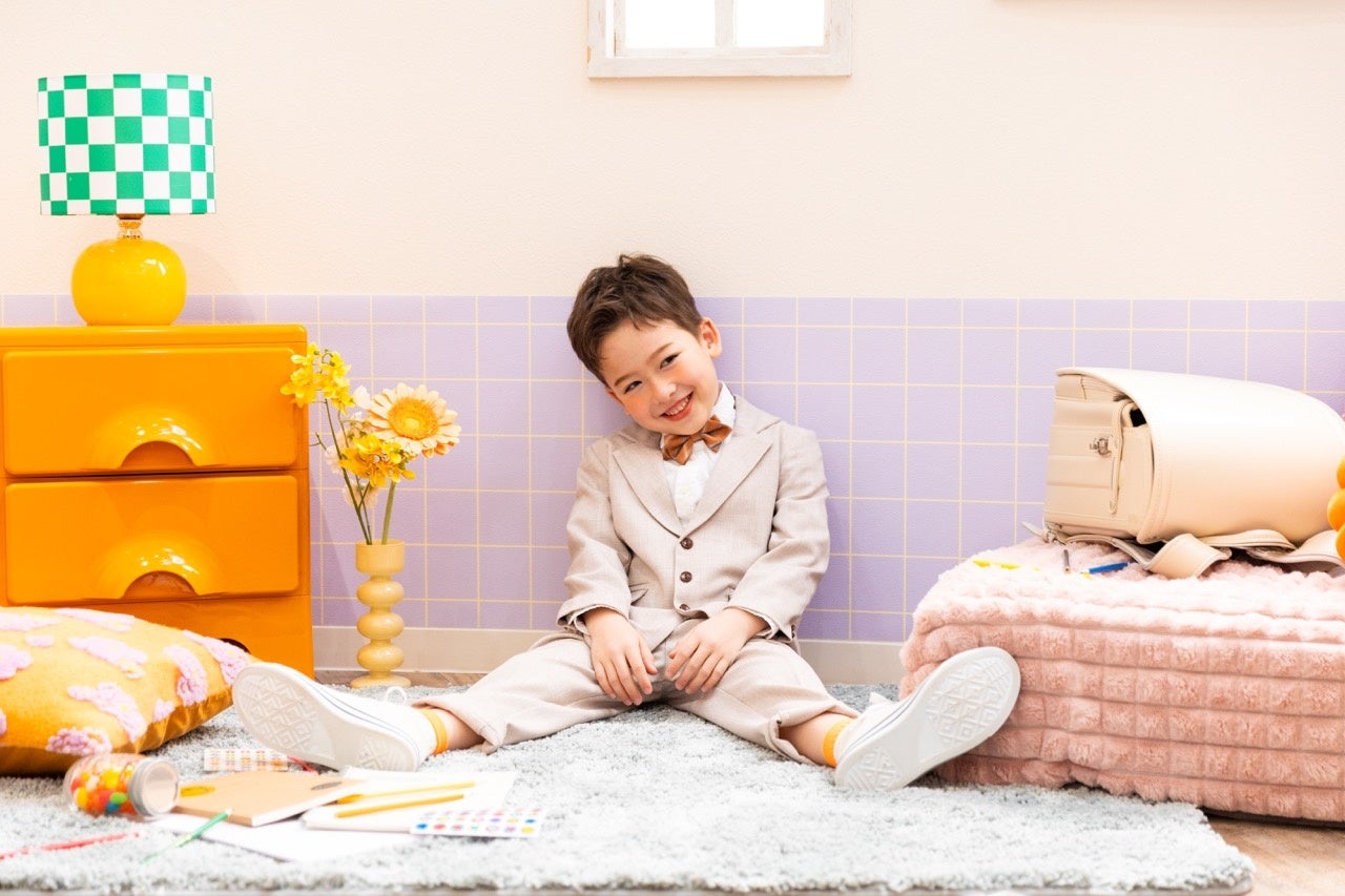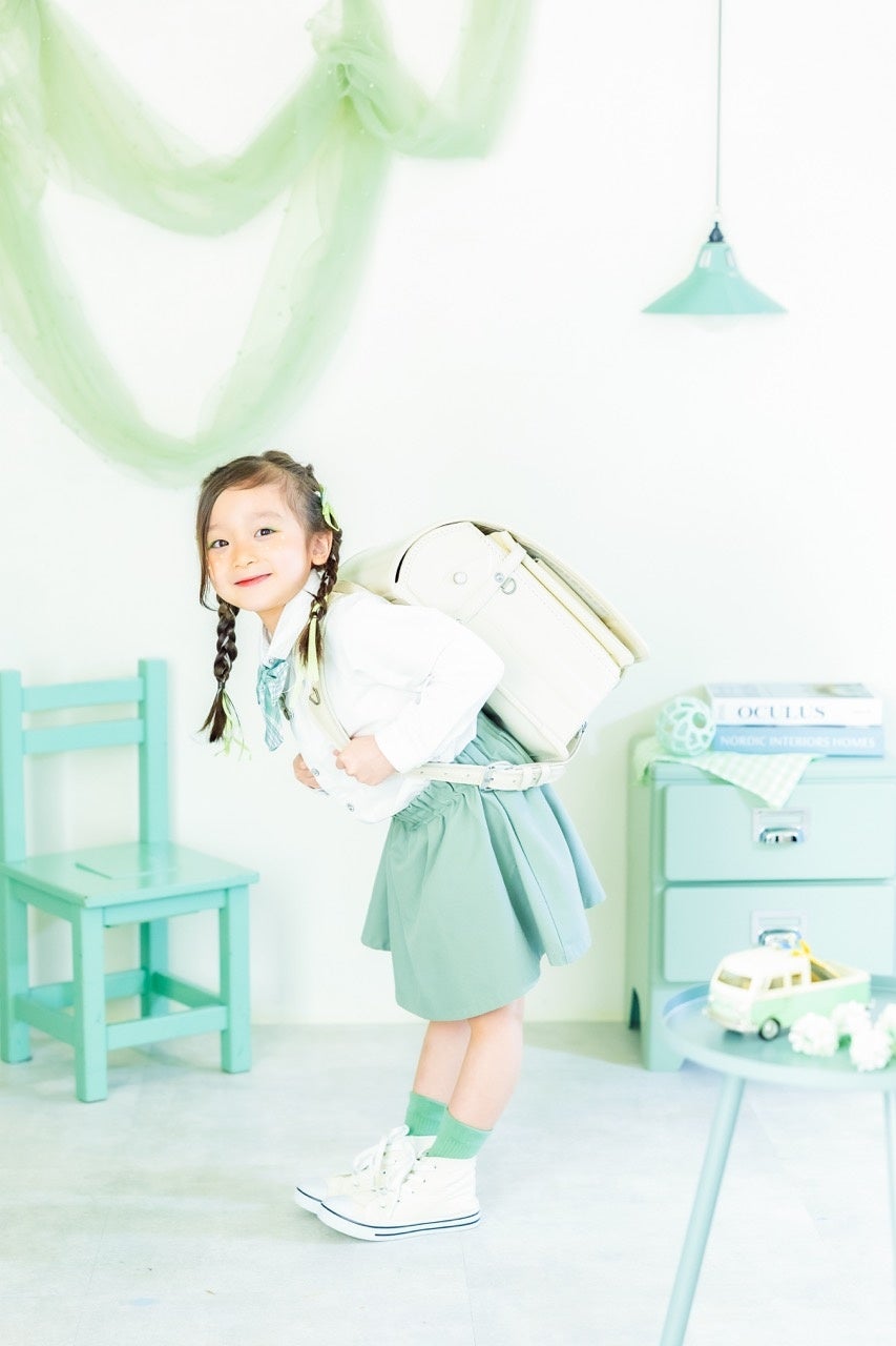 「NEW WORLD」は、そんな感度の高いファミリーに向けた、新しい入学フォトのスタンダードです。真新しいランドセルを背負った姿、少し大きめの制服。