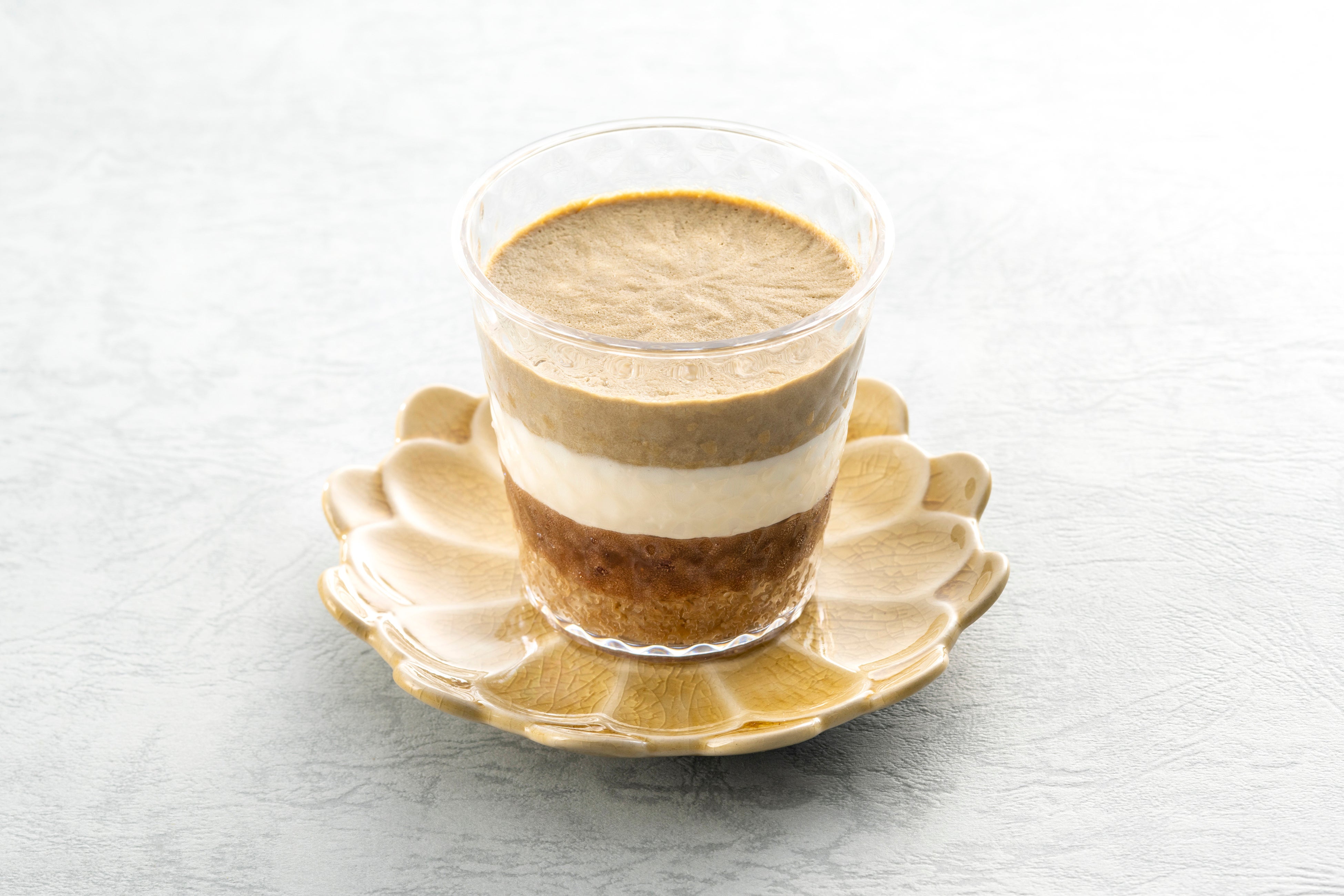 コーヒーをふくませたスポンジにつぶあんを重ね、ほうじ茶が香るチーズクリームを合わせました。レーズンをしのばせることで、香ばしさの中にふわりと甘酸っぱさが広がり、後味に奥ゆきが生まれました。