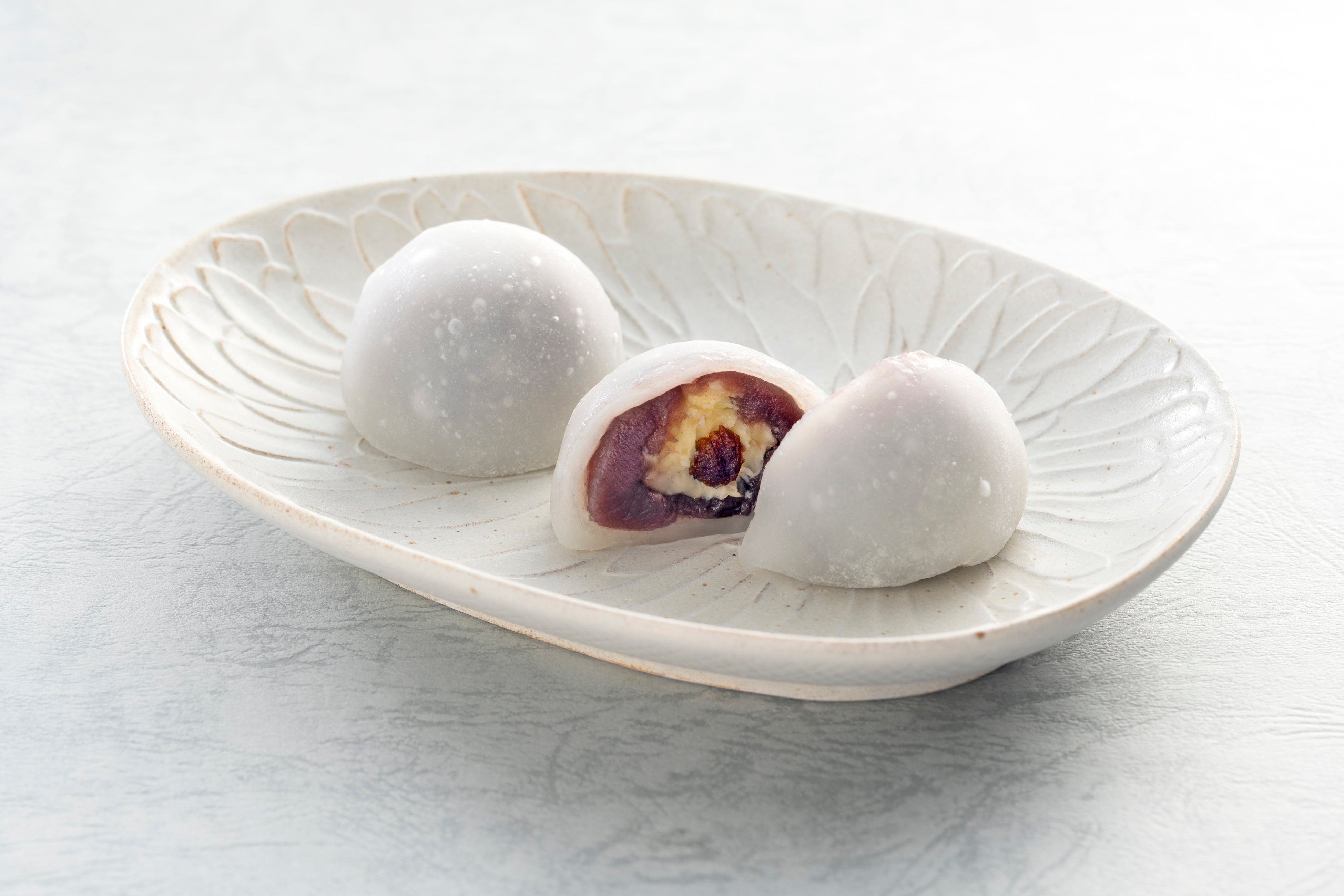 ラム酒に漬け込んだレーズンに、クリームチーズとバターを合わせ、やわらかな求肥で包んだ大福です。