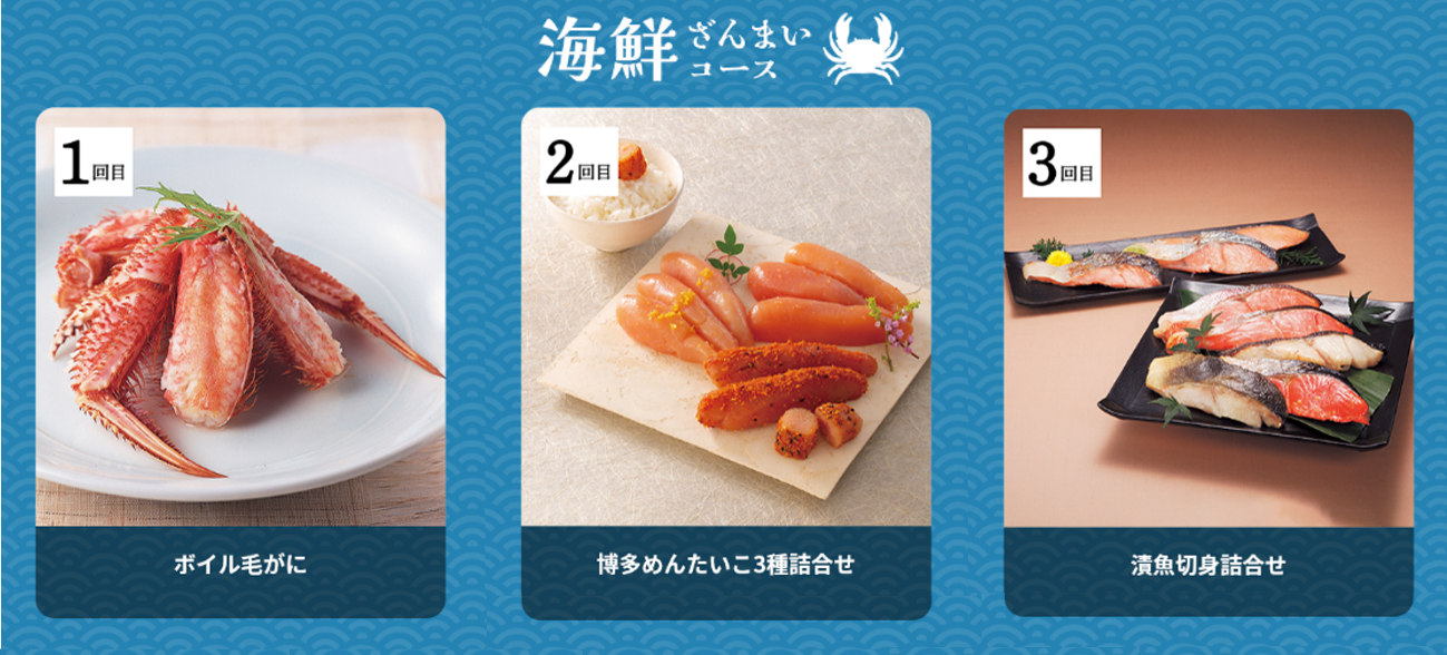 応募時に選択したコースを自宅と実家の両方に3ヵ月連続でお届け。
