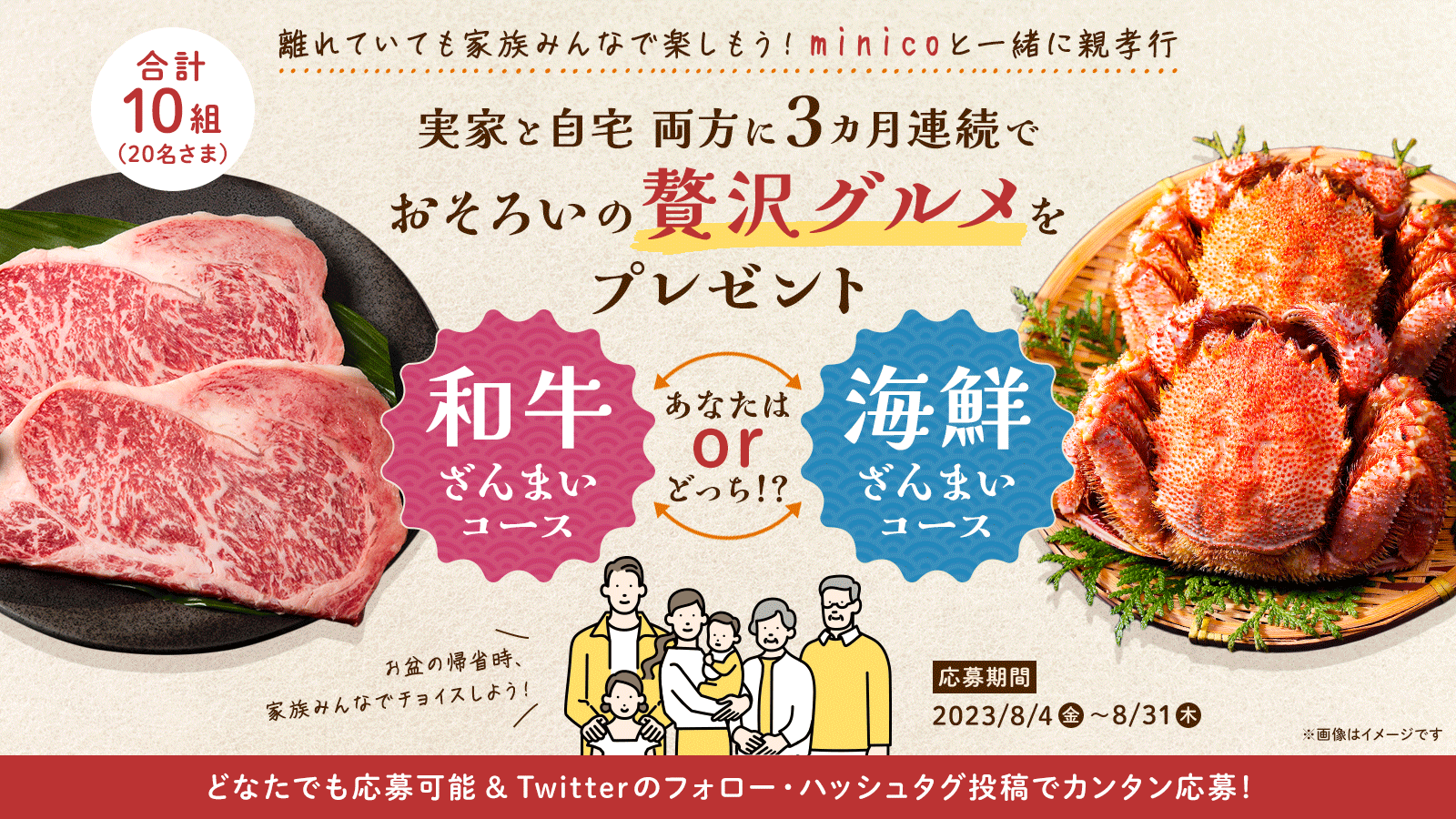 ~「minicoと一緒に親孝行!和牛と海鮮あなたはどっち キャンペーン」~