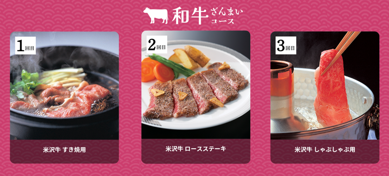 「和牛ざんまいコース」・「海鮮ざんまいコース」のいずれか。
