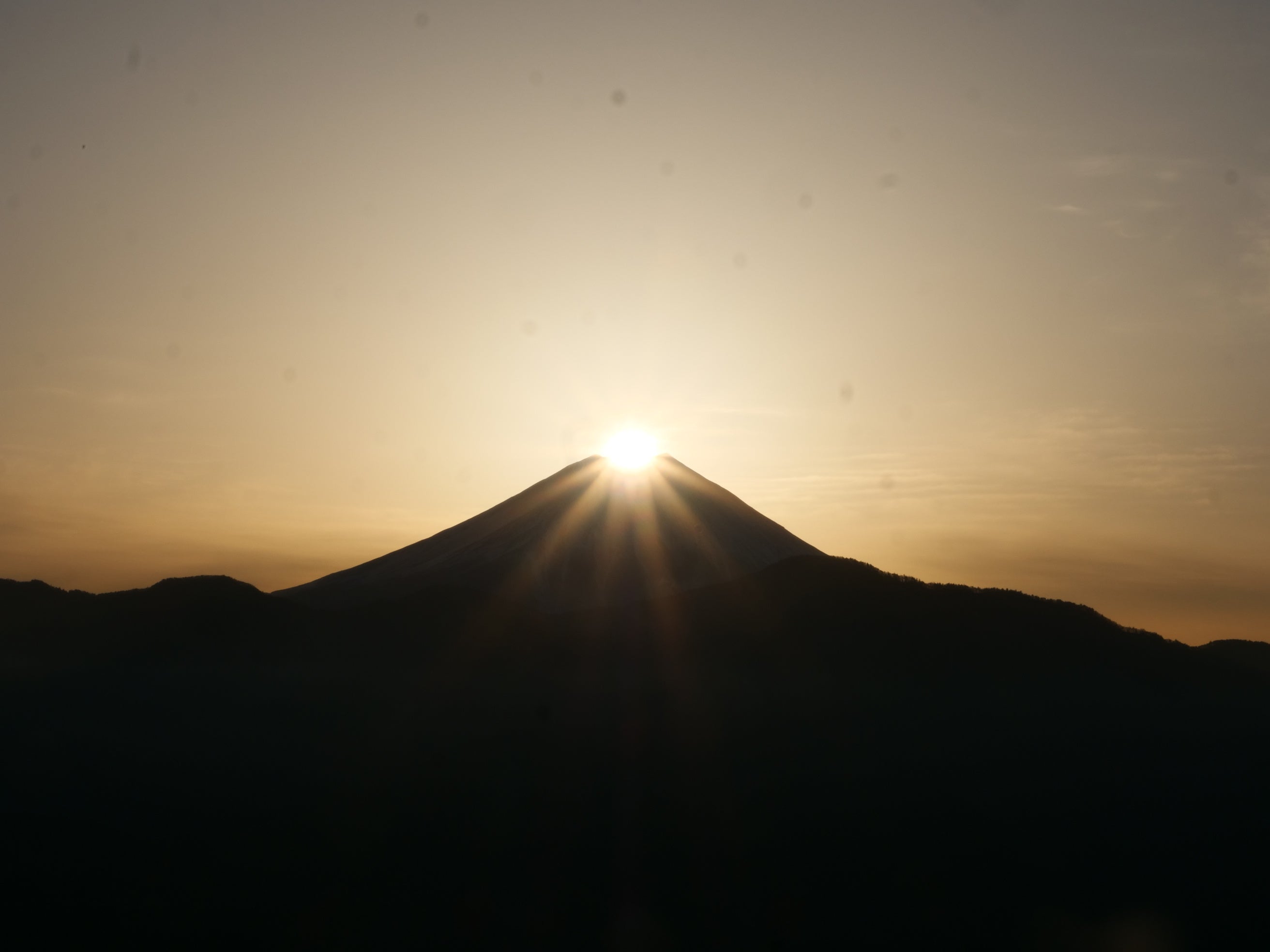 ダイヤモンド富士とは、朝日が昇る瞬間・夕日が沈む瞬間に、太陽が富士山頂と重なり合いまるでダイヤモンドのような輝きを見せる自然の光景です。この時期、身延山では、朝日と山頂が重なり合うダイヤモンド富士を観賞することができます。
