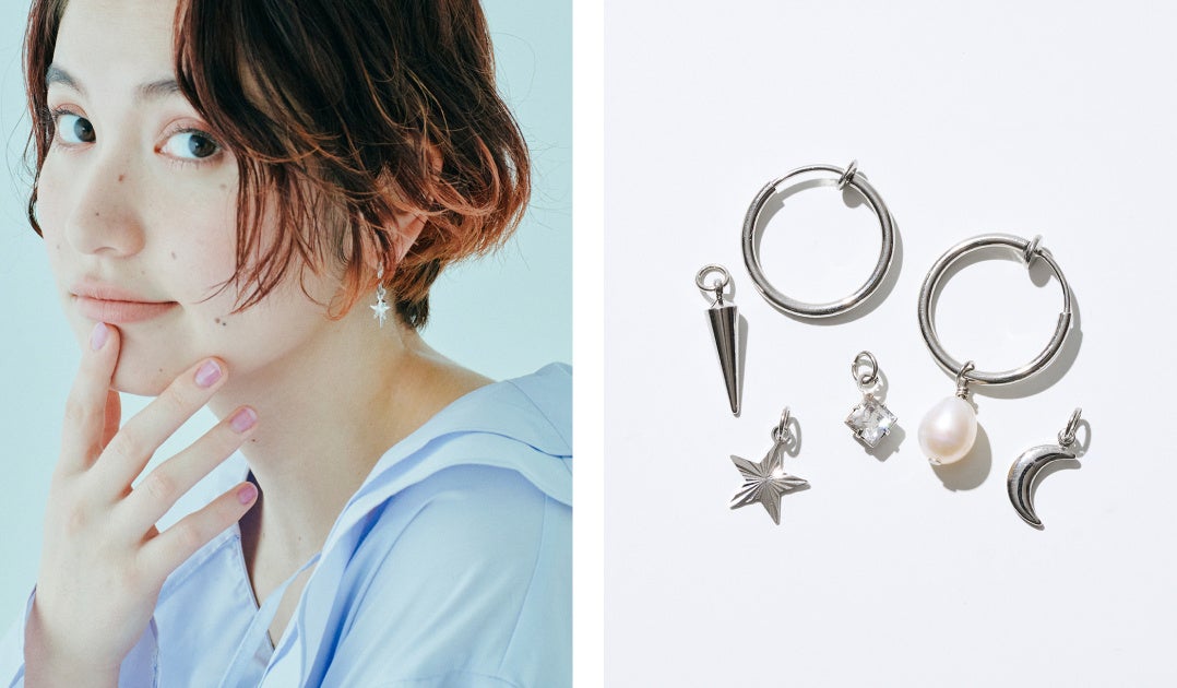 自分好みにカスタマイズできるチャームが魅力のフープイヤアクセは、チャームを外してシンプルに、アクセントとして片耳にたくさんチャームをつけたりと、多様な使い方で毎日の気分に寄り添います。