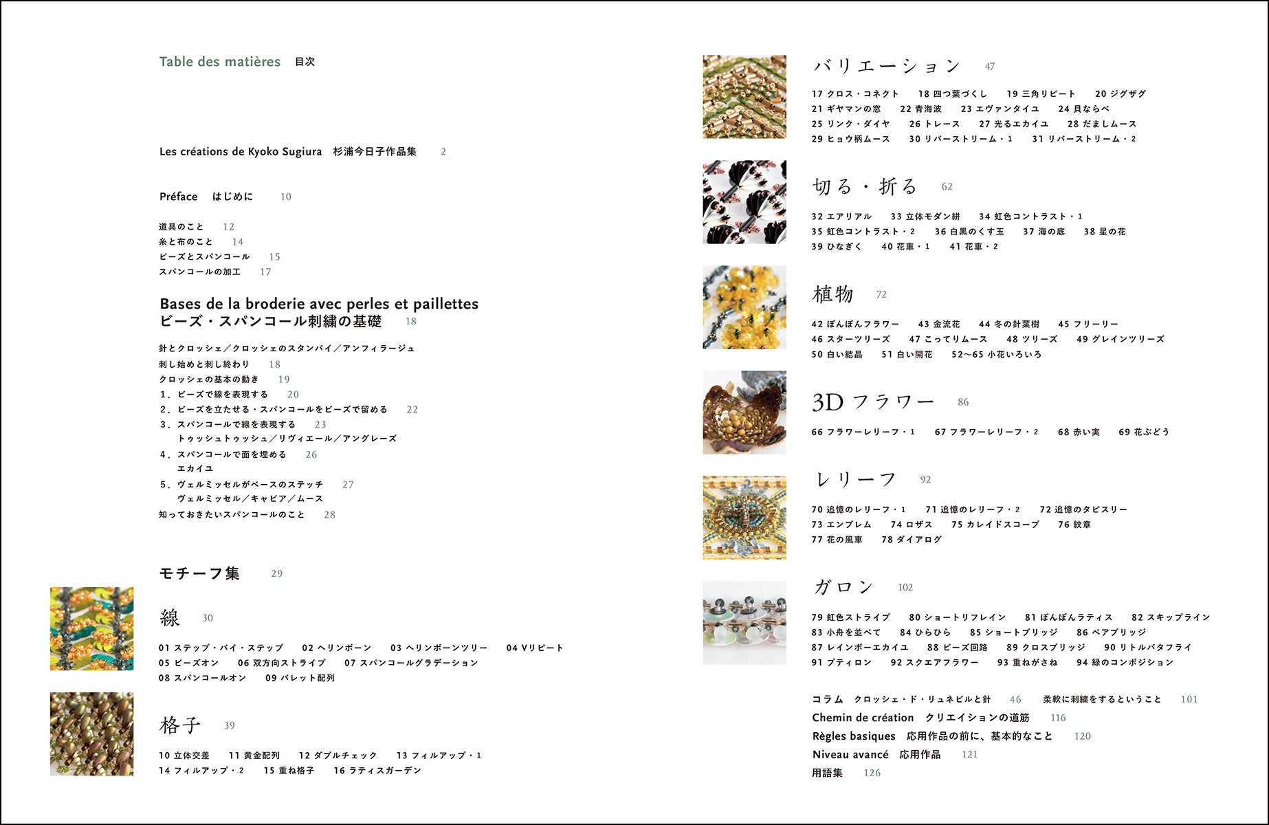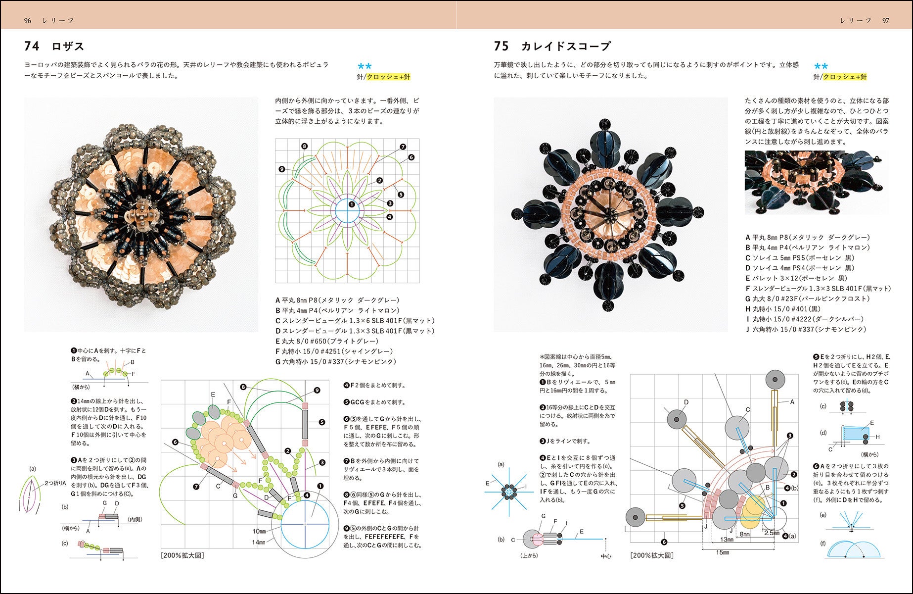 いろいろなテクニックや素材の使い方を94のモチーフの中に惜しみなく盛り込みました。