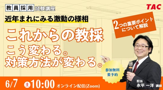 【教員採用試験】オンラインセミナー「これからの教採はこう変わる。対策方法が変わる。」を6/7(土)に開催