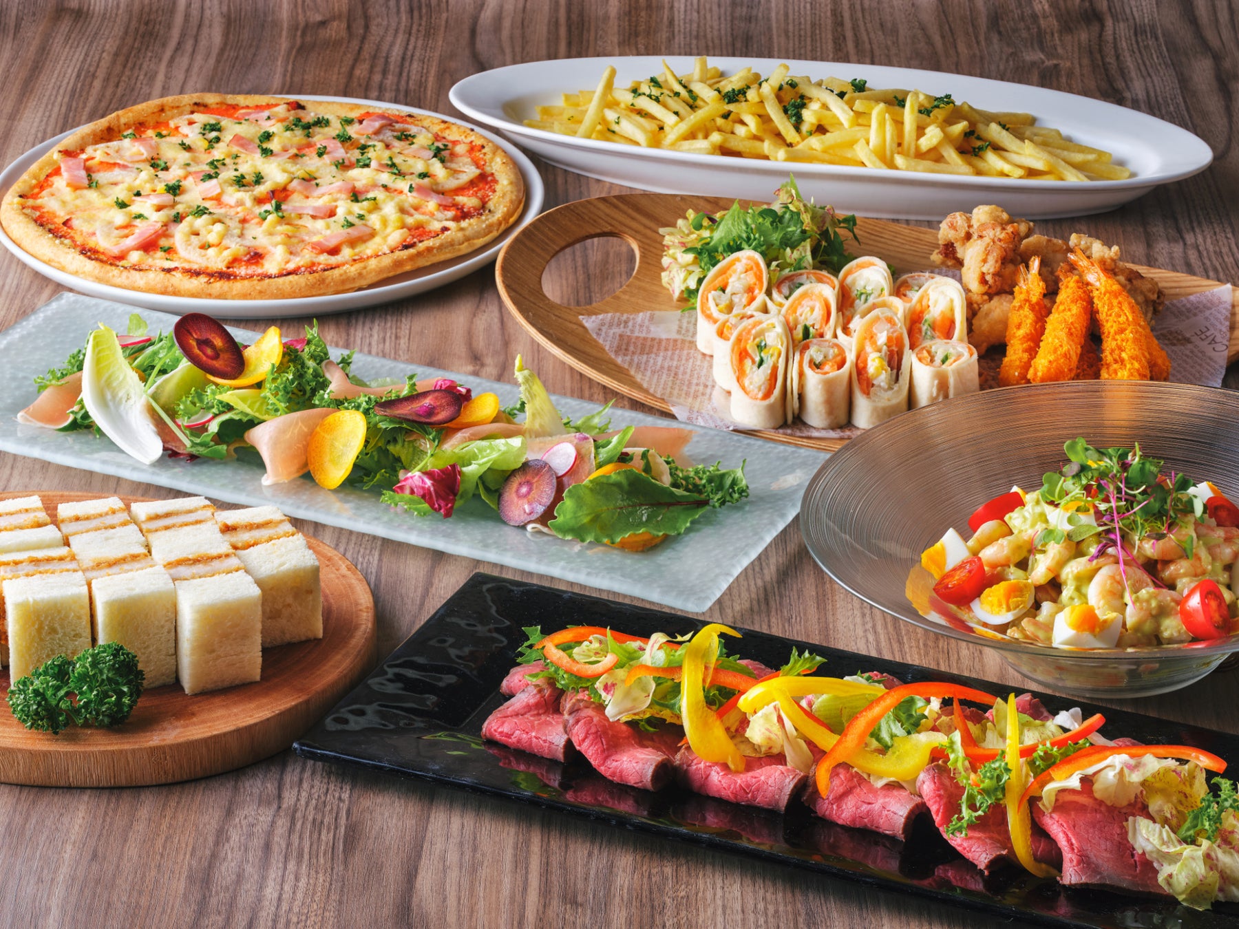 生ハムサラダ仕立て / スモークサーモンのトルティーヤ / コールローストビーフ / ピザ など