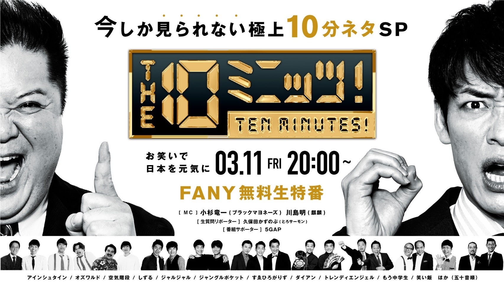 人気芸人たちが10分超えの豪華ネタで日本を元気に!ブラックマヨネーズ小杉&麒麟川島がMC初タッグFANY無料生特番『THE 10ミニッツ!』~今しか見られない極上10分ネタSP~