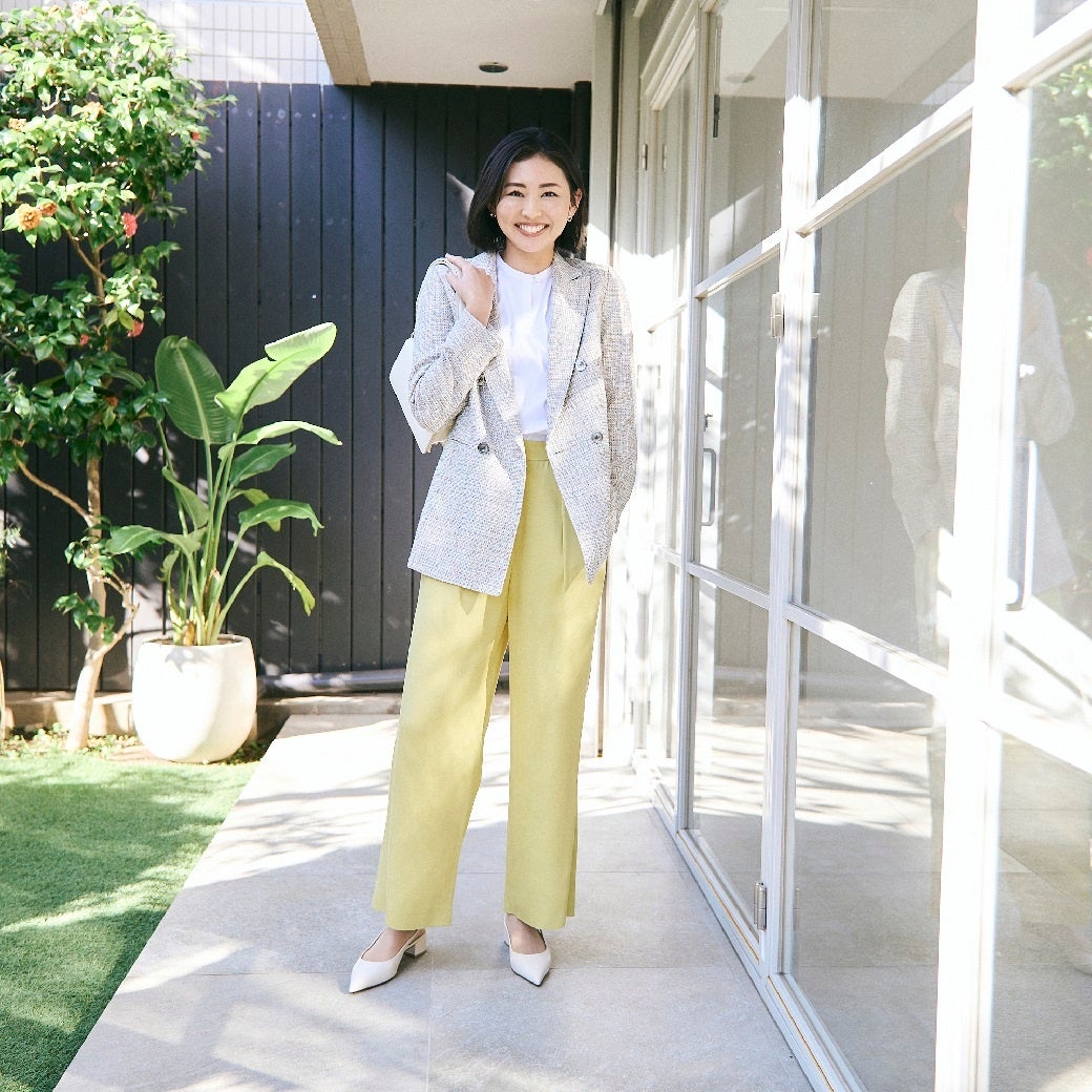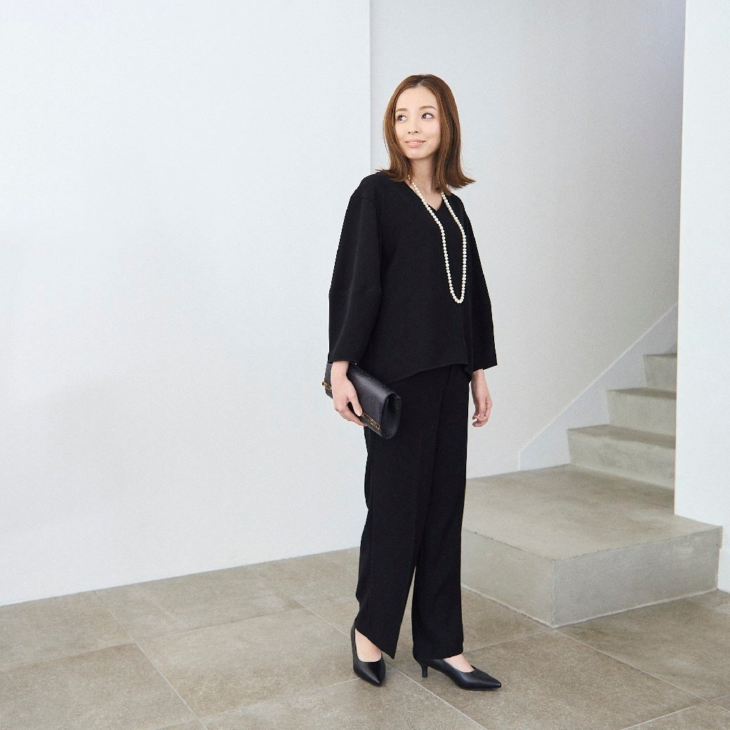 お仕事などのシーンでも大活躍するとろみのある万能ブラウスはパンツとセットアップで合わせれば入卒式でもキマる!