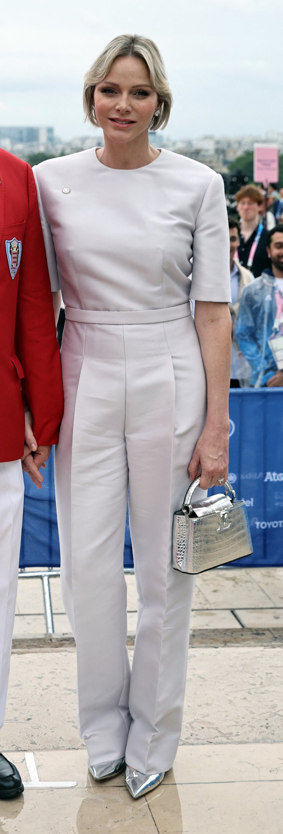 モナコ公国のシャルレーヌ公妃が、パリ2024オリンピック開会式にルイ·ヴィトンのカスタムウェアを着用し出席しました。