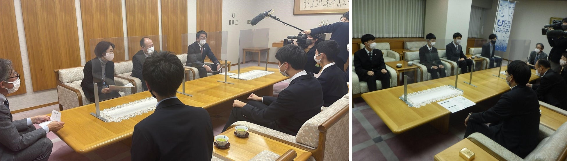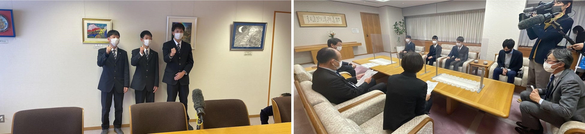 2022年7月10日に行われた『スポGOMI甲子園2022・新潟県大会』で優勝した高志中等教育学校(新潟県新潟市、校長:灰野仁)在校生3人組の「チャンクbyチャンク」が、大会での成果を報告するため新潟県中原八一市長を表敬訪問しました。