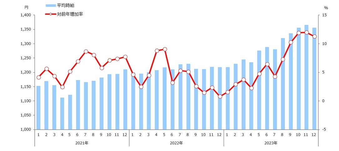 2023年12月度 アルバイト平均時給調査 全国の平均時給は1,356円