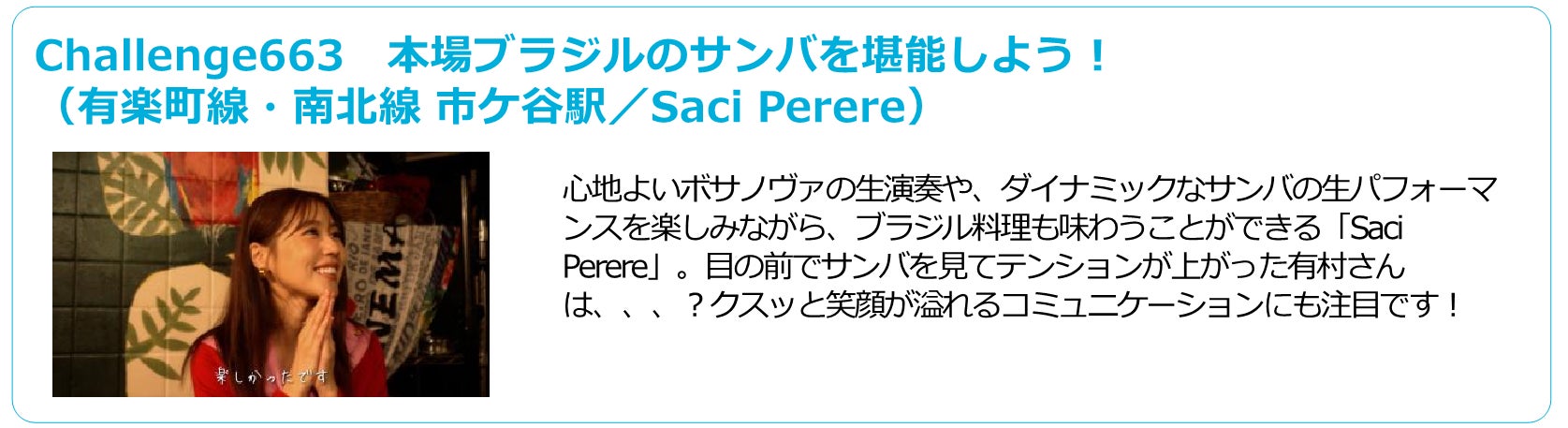 また、有村さんが体験しているチャレンジ以外にも、特設WEBサイトでは300以上のチャレンジをご用意しています!みなさんもぜひ、その街ならではの魅力、リアルならではの体験をお楽しみください!