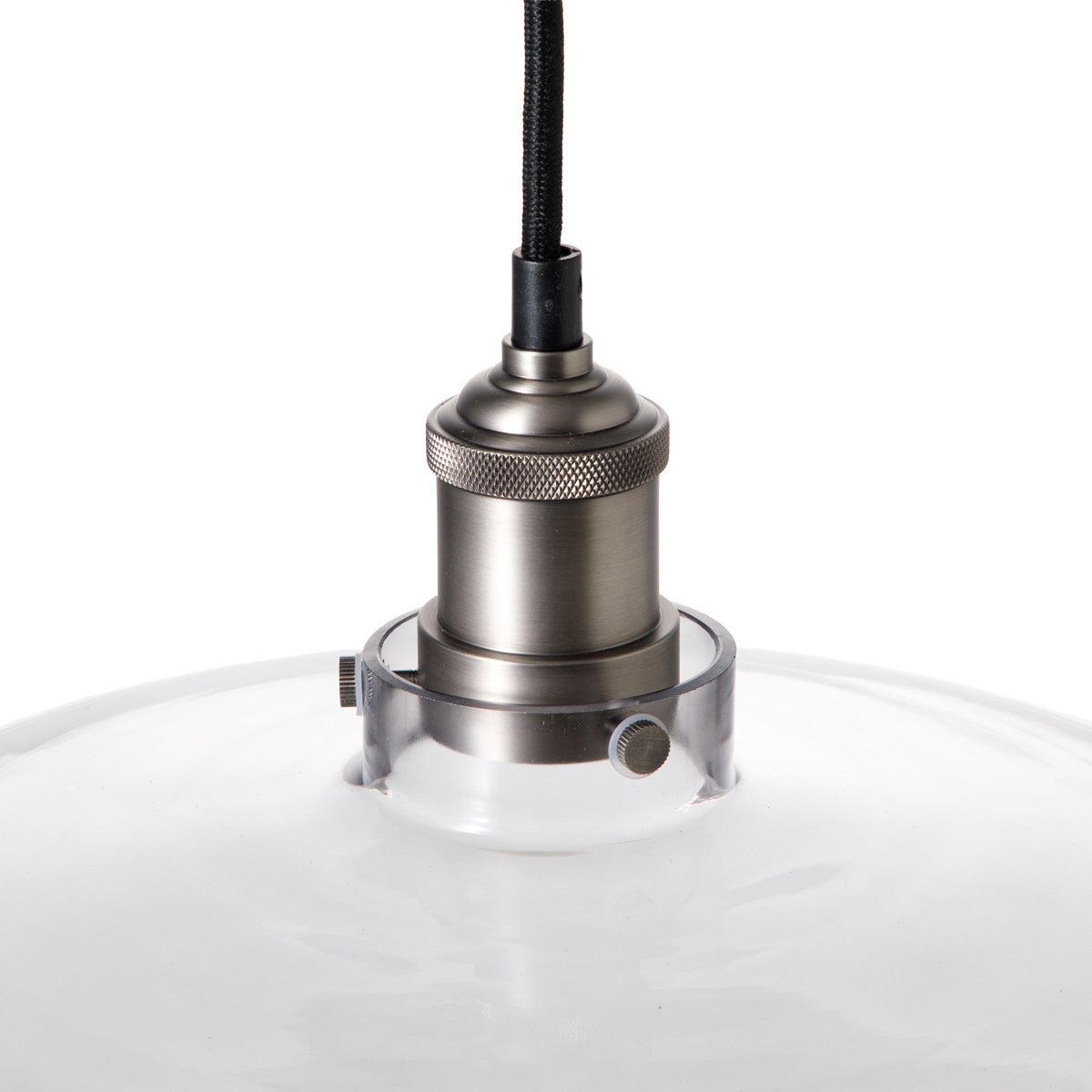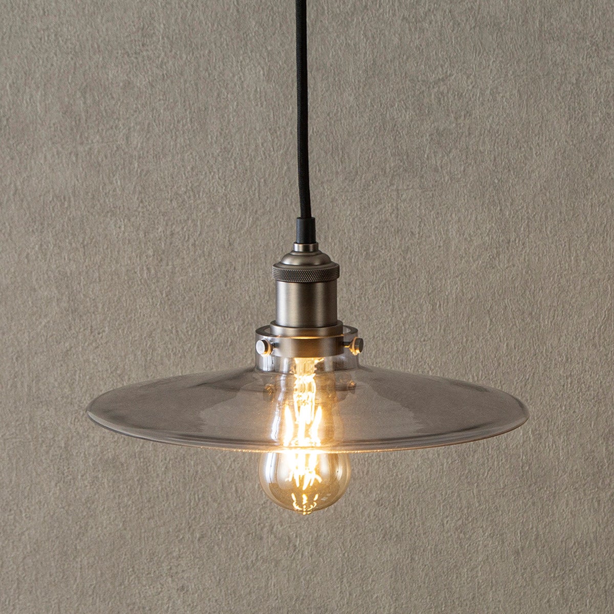半透明のガラスシェードに金属製のソケットが組み合わさり、モダンな空間を演出します。シェード部分が半透明なので、天井側にも明かりが広がり、お部屋全体の雰囲気が変わります。