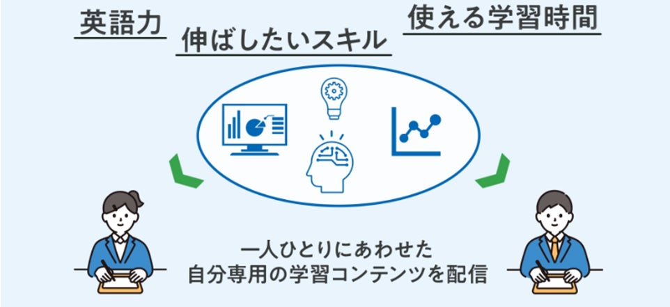 – 学習者のレベル・関心・学習時間に応じて、一人ひとりに最適な教材(MyRecipe)を自動配信