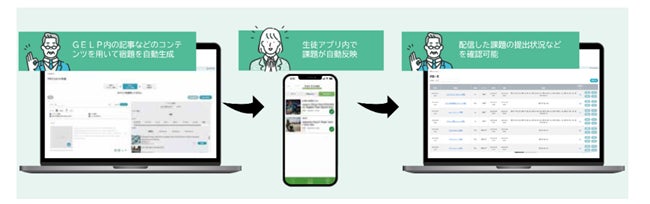 – 先生管理画面でAI生成の設問が配信可能、音読評価や学習進捗を一括管理
