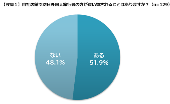 (1)外国人旅行者の来店・購入は、半数以上(51.9%)の店舗が「ある」と回答