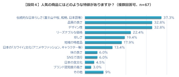 (4)人気商品の特徴は「伝統的な日本らしさ」が最多で37.3%