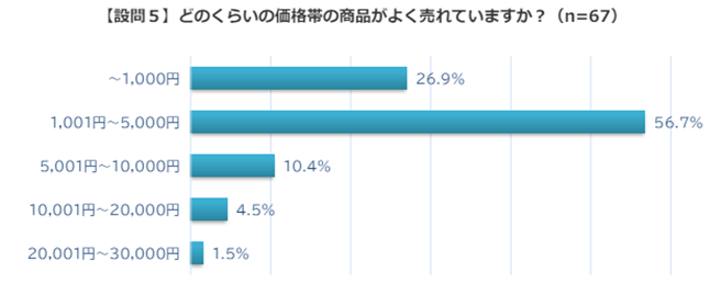 (5)よく売れる価格帯は、「1,001円~5,000円」が56.7%と最多