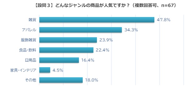 (3)人気の商品ジャンルは、47.8%が「雑貨」と回答