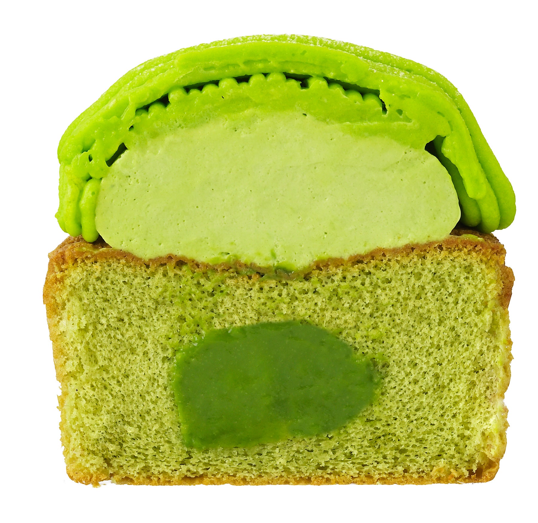 特長:濃い味わいの抹茶カスタード入り抹茶スポンジの上に、まろやかな風味の抹茶チーズクリームを重ね、上面に爽やかな酸味のクリームチーズとほんのり甘い白あんを合わせた抹茶チーズあんを絞りました。抹茶のほろ苦さとチーズのまろやかなコクと甘みが重なり合い、食べ進めるごとに異なる抹茶の味わいを楽しめます。