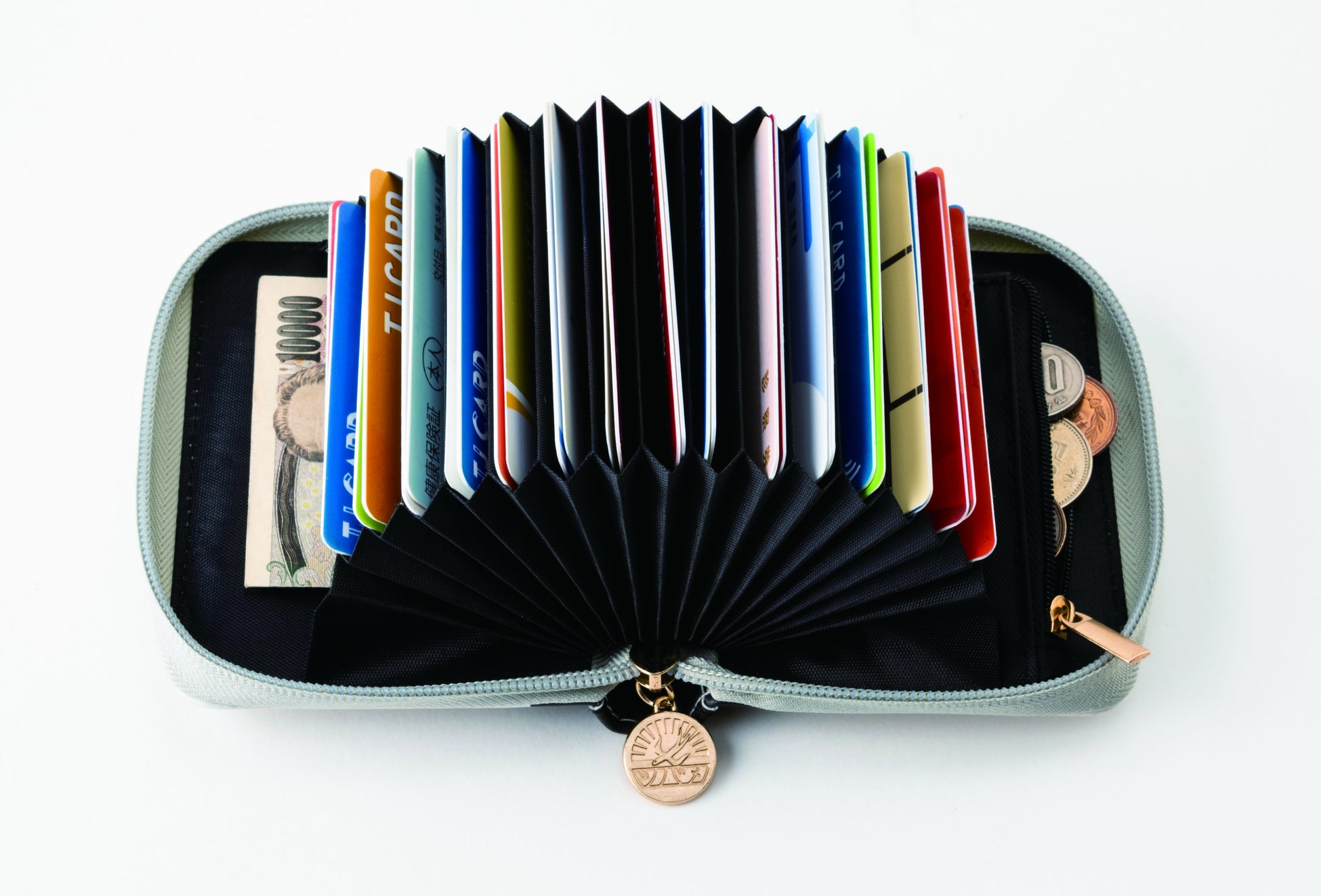 ■じゃばら状に開くので、必要なカードを見つけやすい♪ ファスナー付きのコイン入れも!