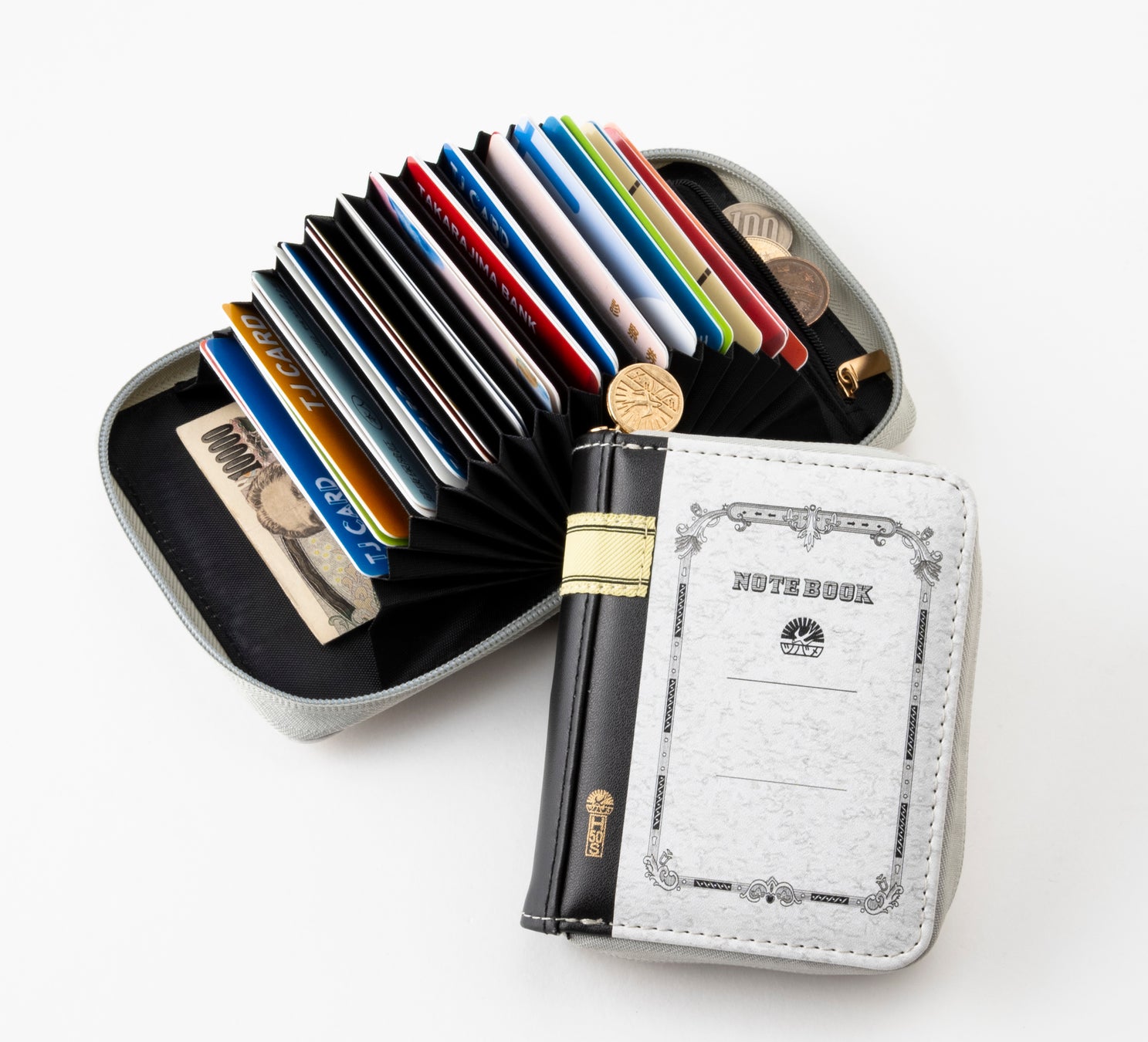 まるで小さなツバメノート! 開けてビックリ、30枚のカードとお札&コインが入る大容量!