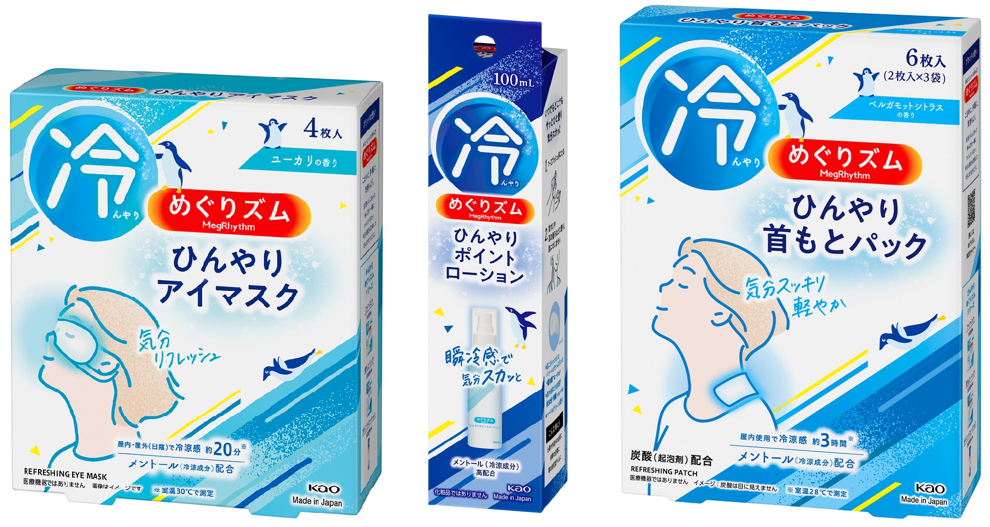 この度、春夏シーズンに相応しい“心地よい、冷涼感”のある3商品を、「ひんやりめぐりズム」シリーズとして発売します。気分すっきりリフレッシュして、心地よい休息タイムを過ごせます。