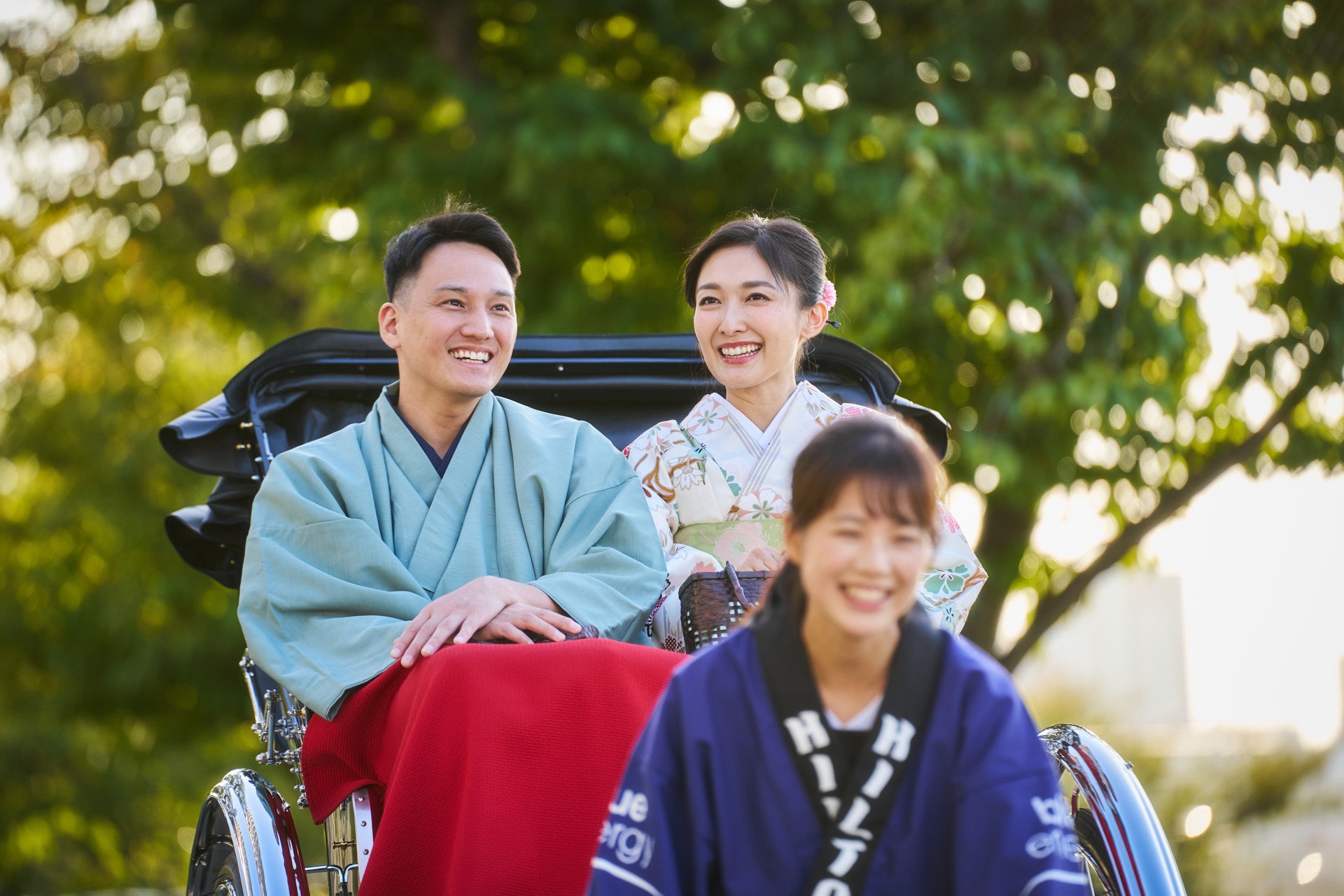 レインボーブリッジや東京タワー®など都内屈指の絶景を臨み、都心にいながらリゾート気分が味わえるヒルトン東京お台場では、ホテル初の試みとしてエグゼクティブルーム・スイートルームをご予約の宿泊者を対象に、10月20日(金)~11月26日(日)の金・土・日・祝日限定(計19日間)で、日本の伝統的な乗り物である人力車でお台場エリアを無料で運行いたします。明治から大正・昭和初期まで移動手段として活躍してきた人力車は、現在では多くの観光地で見かけます。本イベントは観光スポットを多く有するお台場エリアにも人力車を走らせたいというスタッフたちの熱い想いから実現いたしました。人力車は東京・浅草を拠点に活動し、女性の俥夫も多く有する「東京力車(とうきょうりきしゃ)」ご協力のもとホテル1Fのエントランスより出発いたします。ホテルを出発すると、お台場のシンボルであるレインボーブリッジを横目に颯爽と海沿いを駆け抜け、自由の女神を見上げながらフジテレビを通る約15分間の体験となります。また、ホテル内にある「着物レンタルVASARA」で着物をレンタル(別途料金)して乗車することもできるので、お台場の観光スポットを背景に人力車と着物で記念撮影をすることも可能です。