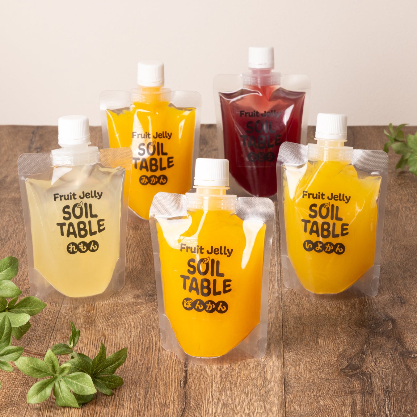 愛媛の豊かな自然の中で大切に育てられた柑橘や国産ぶどうを使ったゼリー。果実の濃さとフレッシュな甘みを味わえる色とりどりのゼリーは、持ち運びにも手軽なパッケージ。
