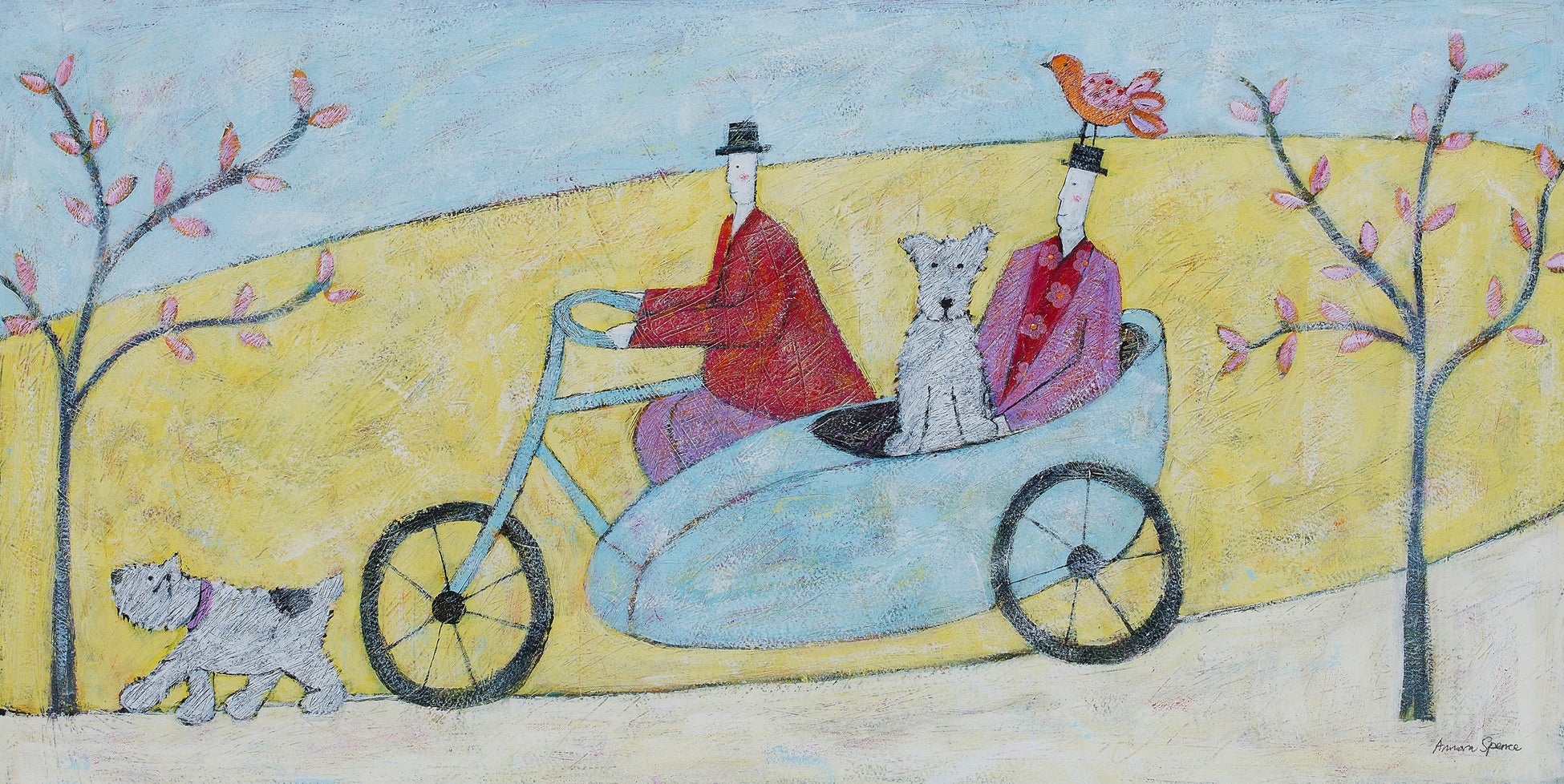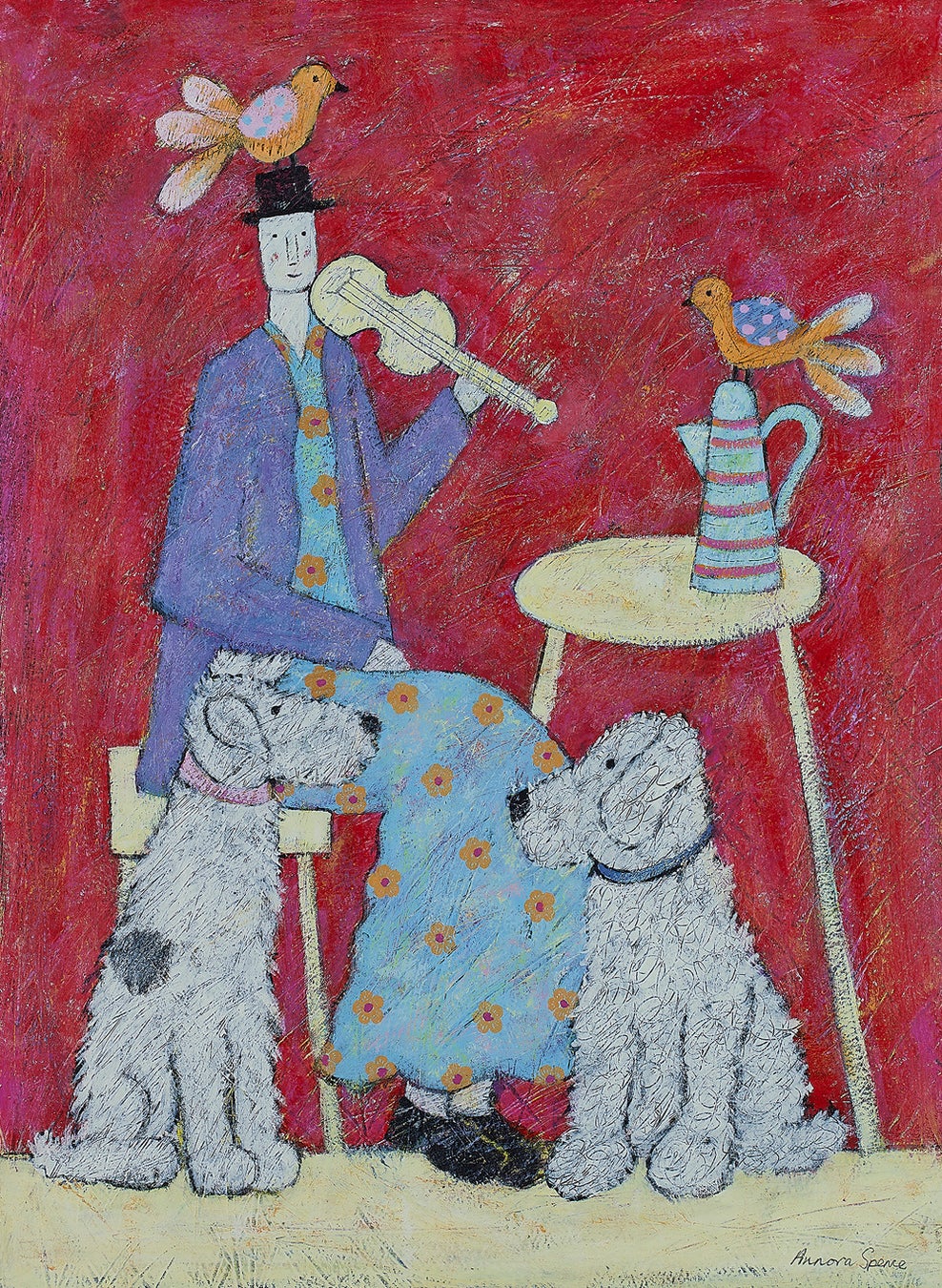 イギリスの女流画家を代表するアノラ・スペンス。赤、青、黄色など、温かみのある色調で、人間と動物とのふれあいをユーモアたっぷりに描きます。今展では、英国より届いたばかりの最新油彩画を中心に30余点を展示即売いたします。どこか優しくどこか楽しいアノラ・スペンスの現代アートをどうぞお楽しみください。