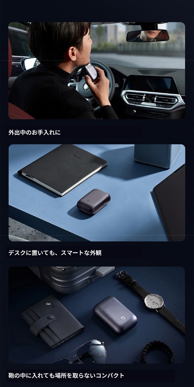- 一見、髭剃りがわからないコンパクトさで いつも持ち歩いて身だしなみの味方に