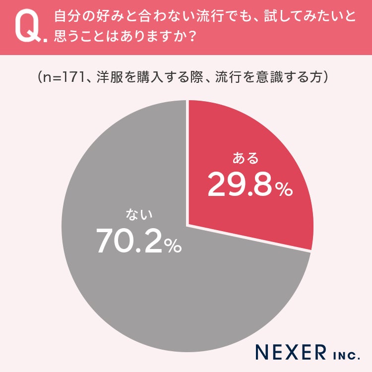 29.8%と約3割の方が、自分の好みと合わない流行でも、試してみたいと思うことが「ある」と回答しています。