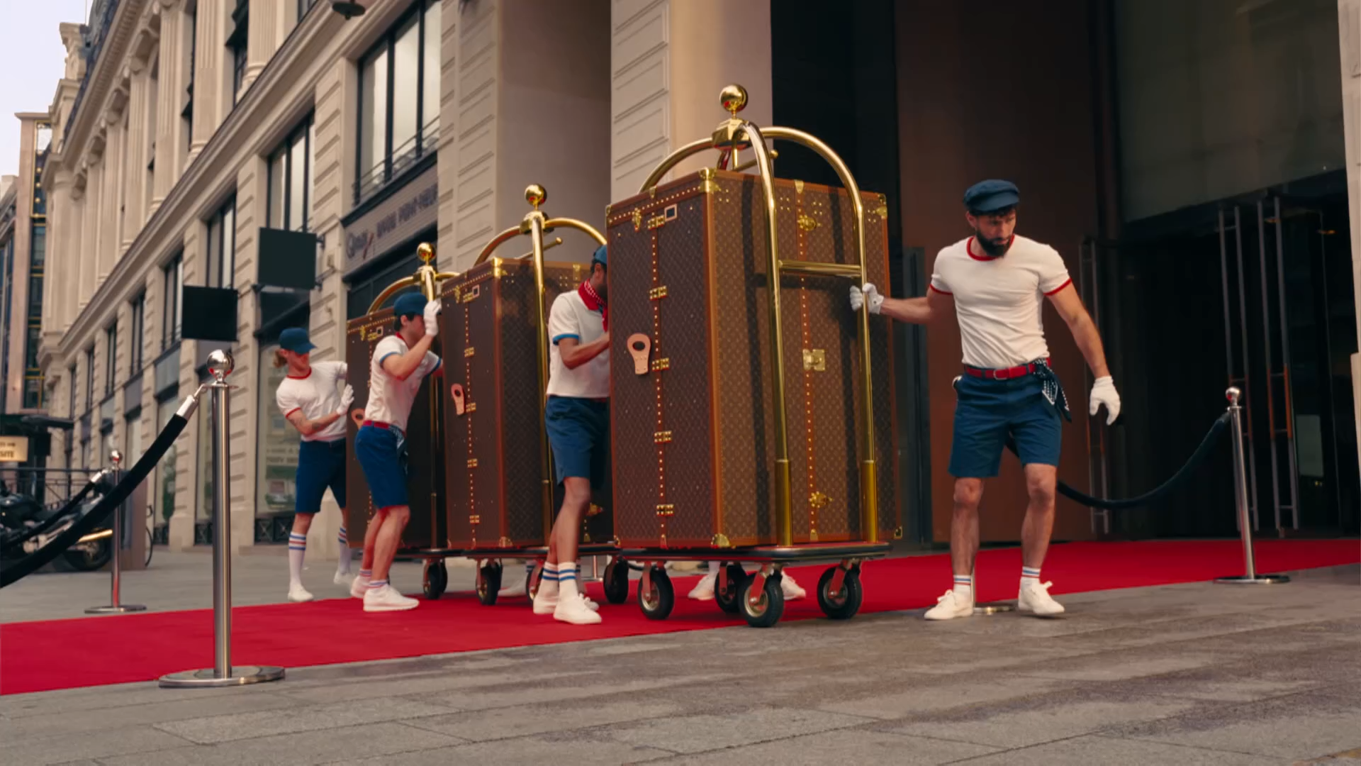そして、すべてのアスリートの究極の夢を象徴する感動的な瞬間が訪れます。ルイ・ヴィトンのメダル・トランクはルイ・ヴィトン本社のファサードの前へ。パフォーマーたちとトロリーは壮大な絵画から抜け出したかのごとくポンヌフ橋をパレードし、パリ造幣局までの道のりを旅のテーマに沿った振り付けで進みます。造幣局で製造されたメダルがルイ・ヴィトンのメダル・トランクに注意深く収納され、川岸でのパフォーマンスを挟んでトランクの旅は川沿いに続き、船に積まれたメダル・トランクが他の2つのトランクと共にトロカデロ広場を目指します。セーヌ川のさざ波の上で究極の賞品を見守り、トランクに付き添うのはオリンピック大会の2人のレジェンドでした。