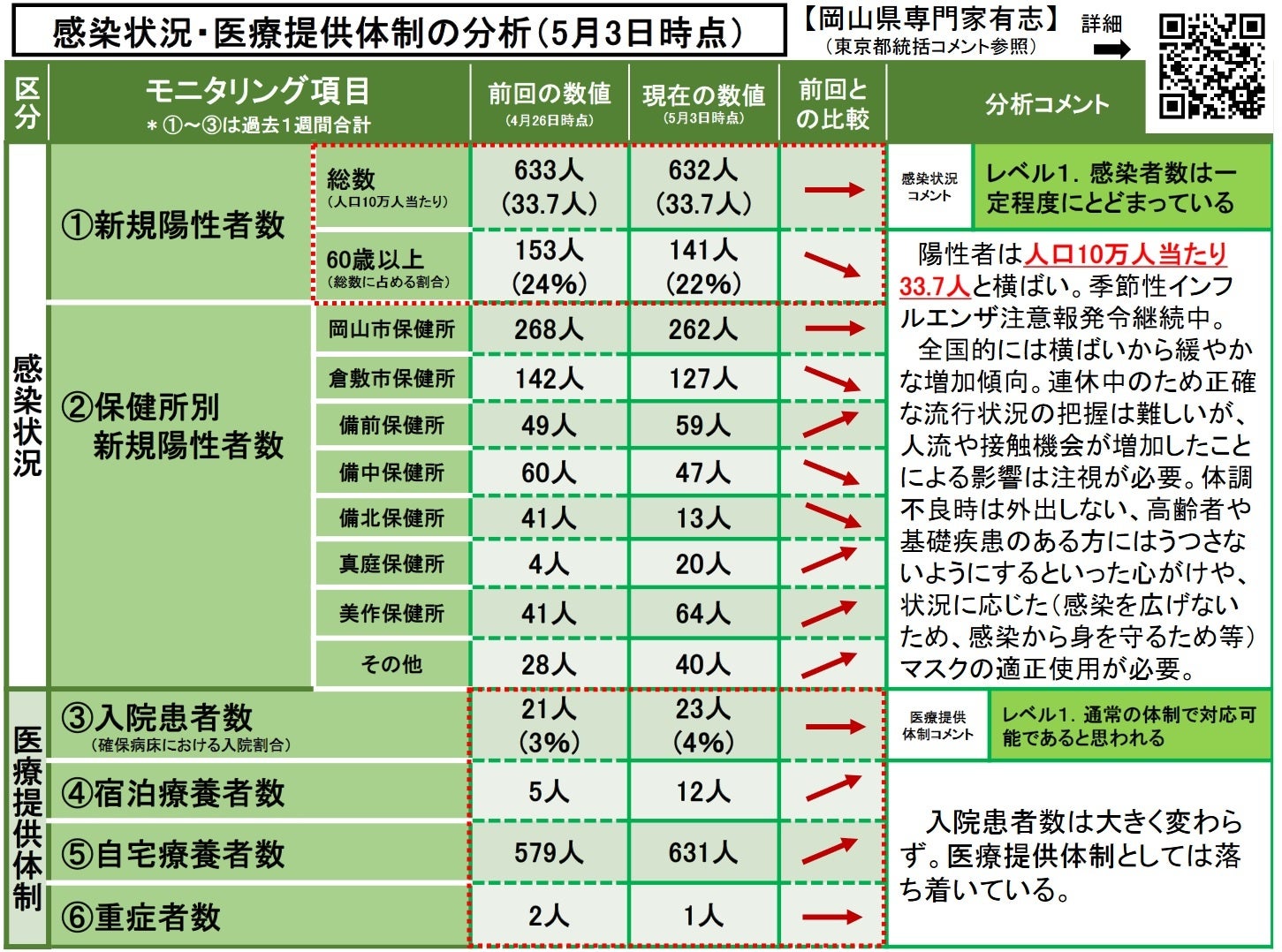 【岡山大学】岡山県内の感染状況・医療提供体制の分析について(2023年5月3日時点)