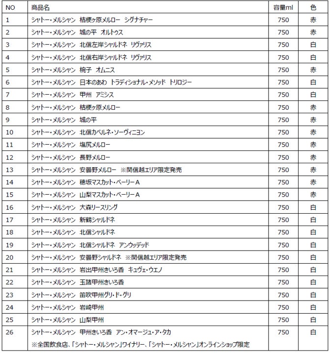 ※対象商品には、上記以外にもワイナリー・EC限定販売品なども含みます。