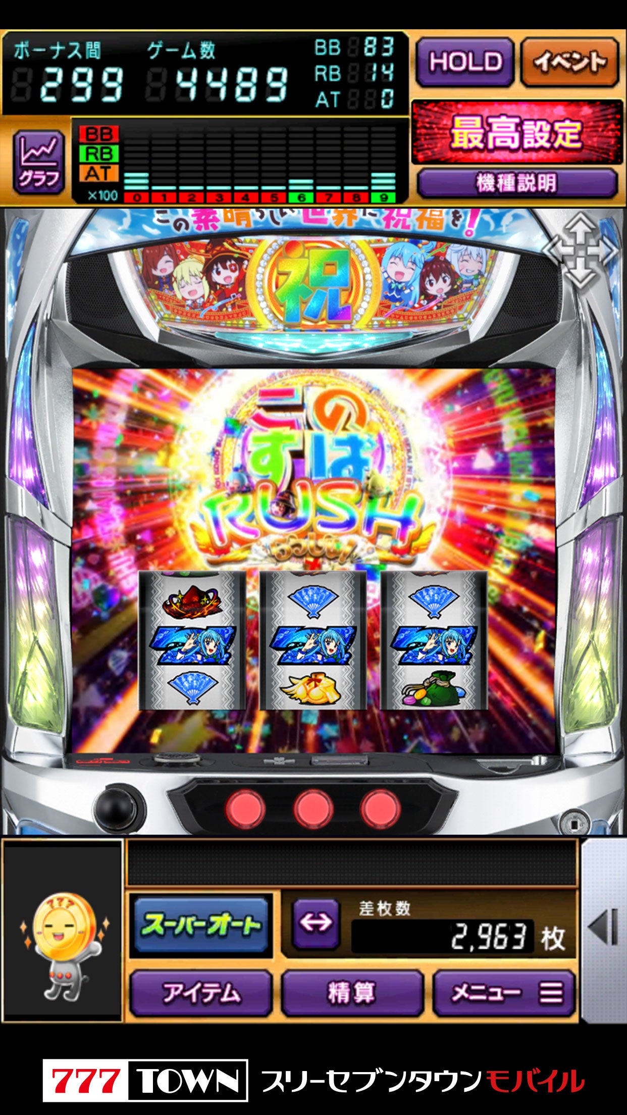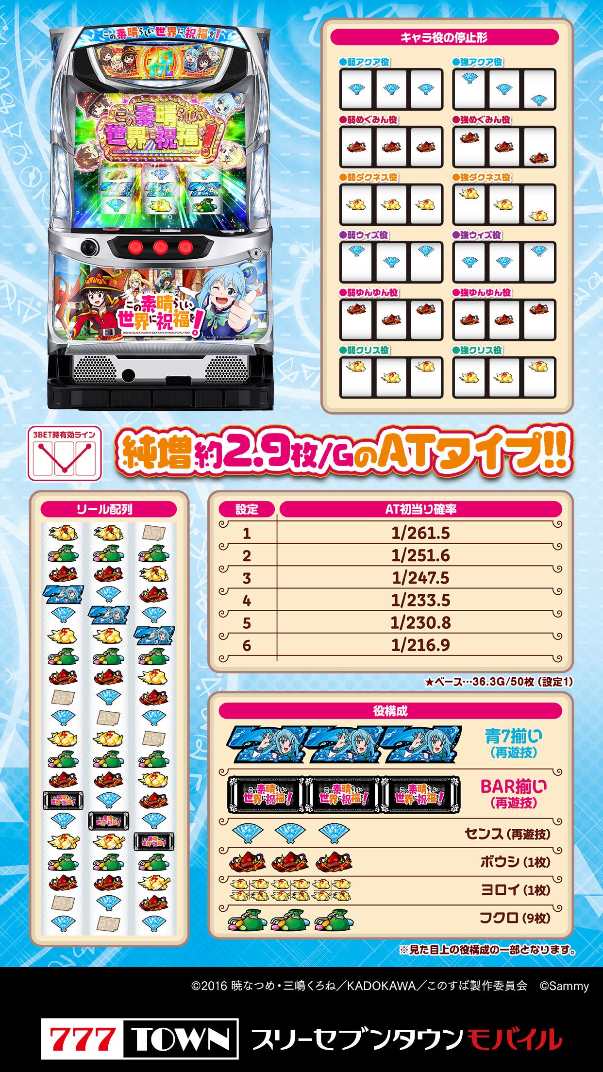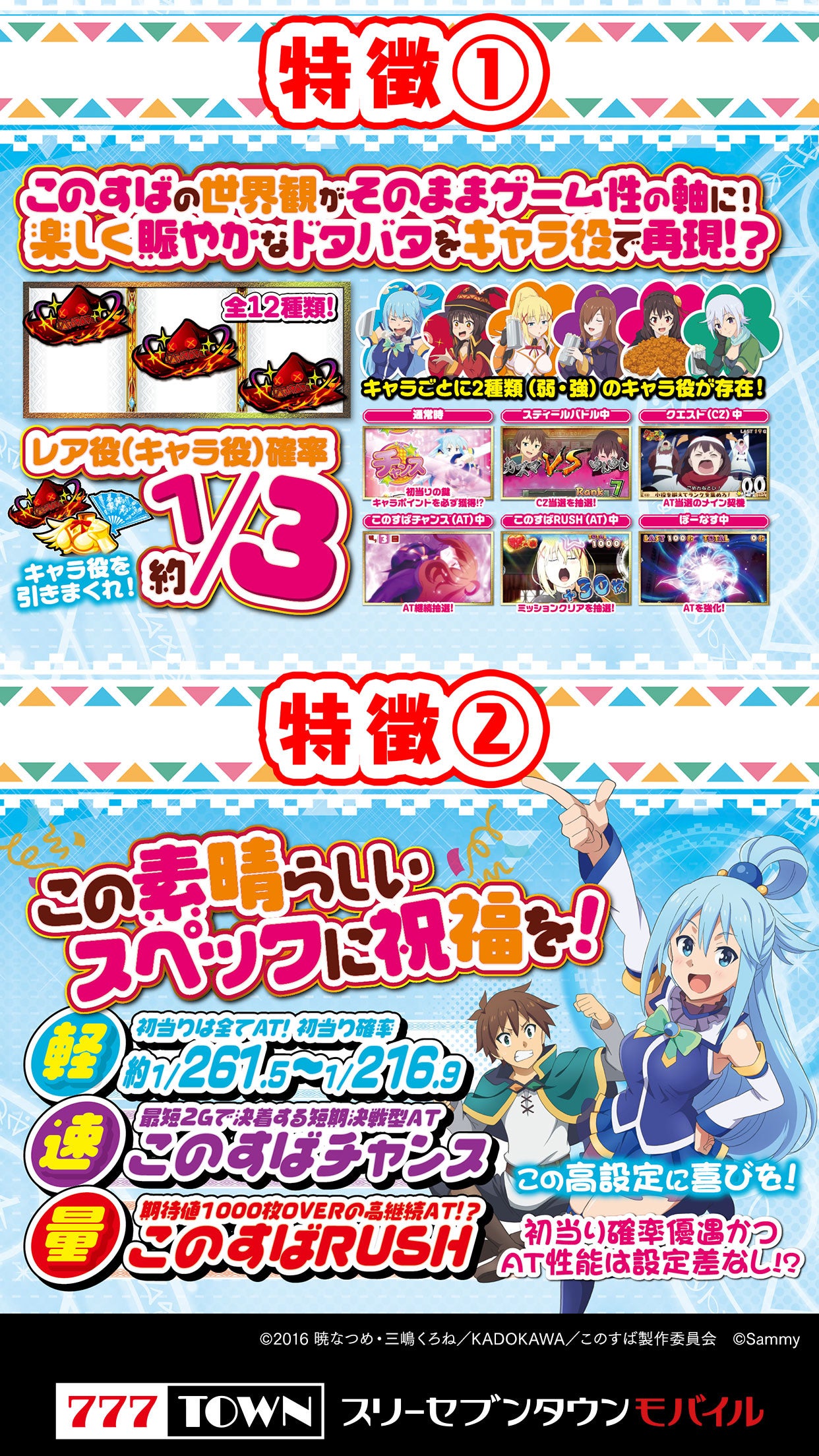 サミーの最新機種「パチスロこの素晴らしい世界に祝福を!」が777TOWN mobileに登場!