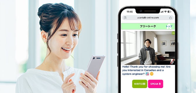「U-CAN TALK」では、話した英語をAIが解析し回答を生成するので、受講生のレベルや好みに応じて柔軟に会話したり、発音や文法にフィードバックが受けられたり、実践的なスピーキング力の習得や効果的な発音矯正につながります。