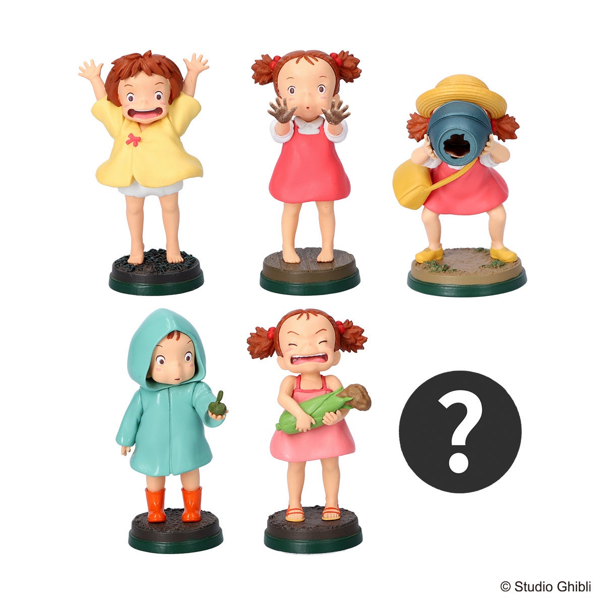 ジブリがいっぱい どんぐり共和国で人気のブラインドパッケージの手のひらサイズのフィギュア、“ポーズがいっぱいコレクション DX”にメイちゃんが登場します。マックロクロスケを捕まえたら手が黒くなってしまったメイちゃんや、サツキと喧嘩し、とうもろこしを抱きしめて泣きじゃくるメイちゃんなど、映画のワンシーンを思い出すポーズが揃っています。シークレット1種は、どんなポーズがでるかお楽しみです。