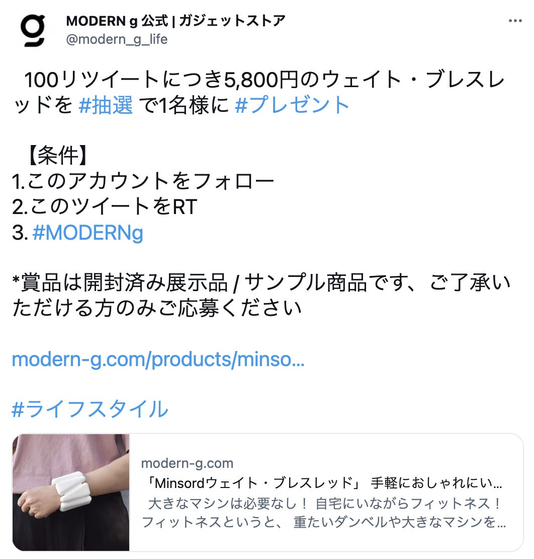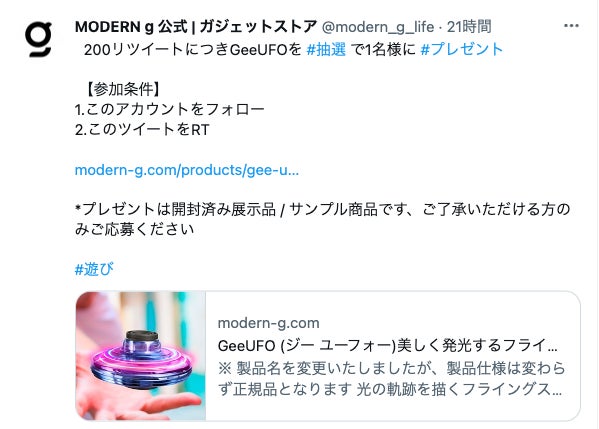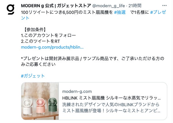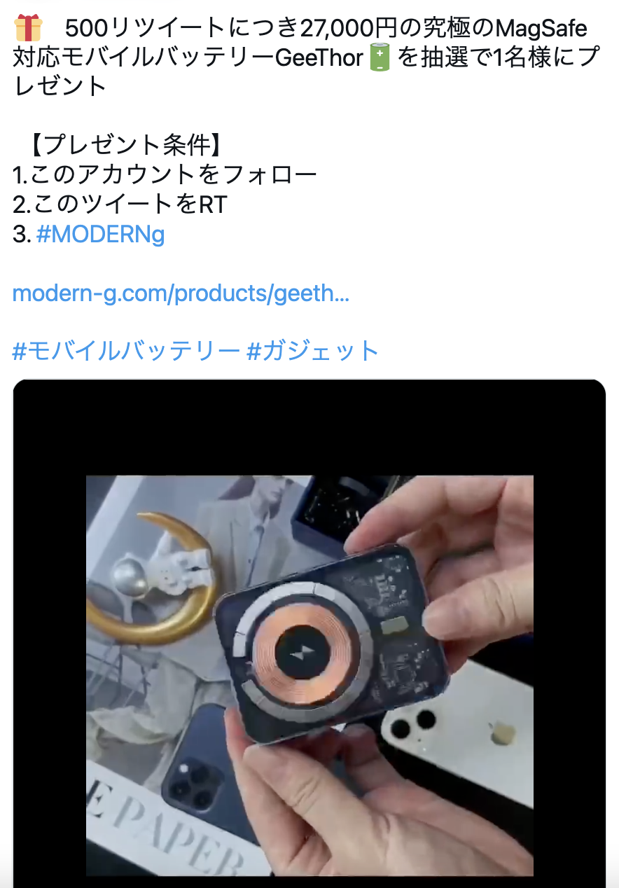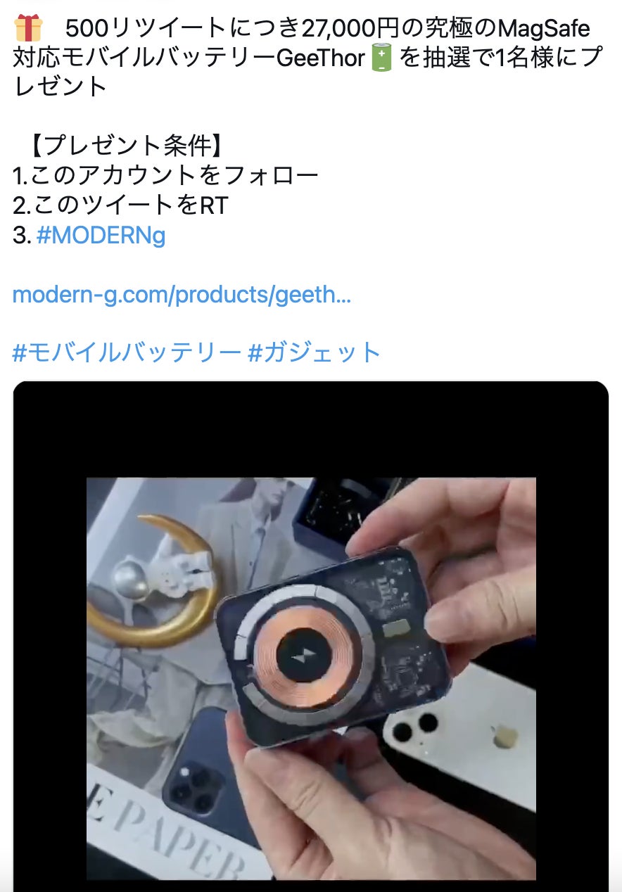 ユニークでおしゃれなガジェットを取り扱うMODERNgの公式Twitter(https://twitter.com/modern_g_life)で超お得なSNSキャンペーンを開始します。