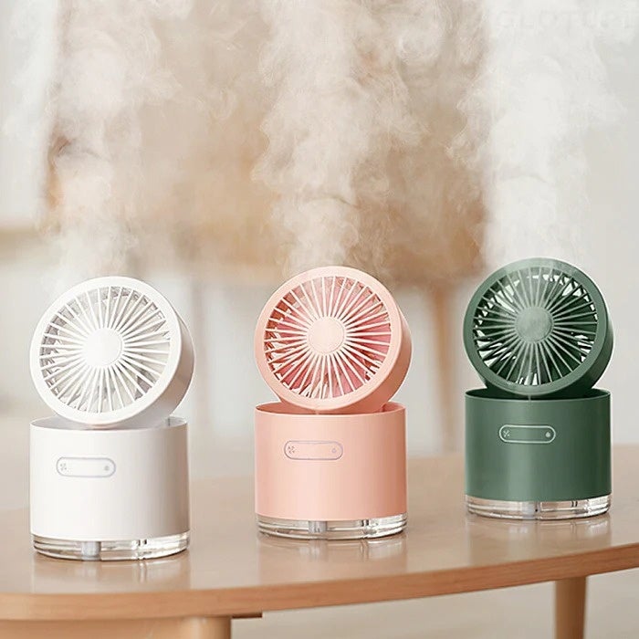 シルキーなミストとアンビエント照明が特徴の充電式扇風機です。