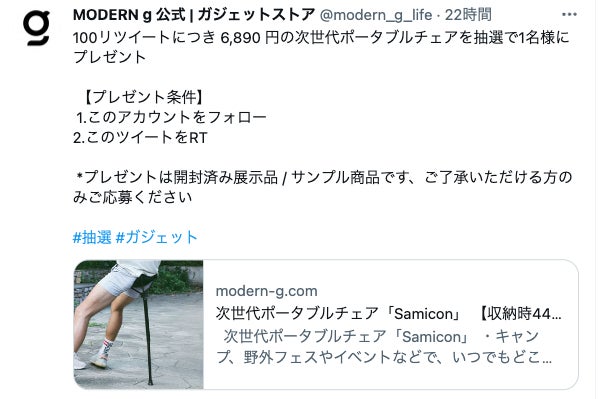 【27,000円のガジェットをプレゼント!】MODERN gの公式Twitterで毎日5商品のギブアウェイキャンペーン!モバイルバッテリー・卓上ファン・ポータブルチェアなど